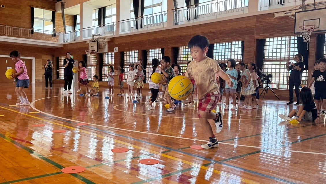 今回の交流では、ゴーディークイズやダンス、ボールを使った交流、ラジオ体操を通して、子どもたちとのふれあいを行いました。