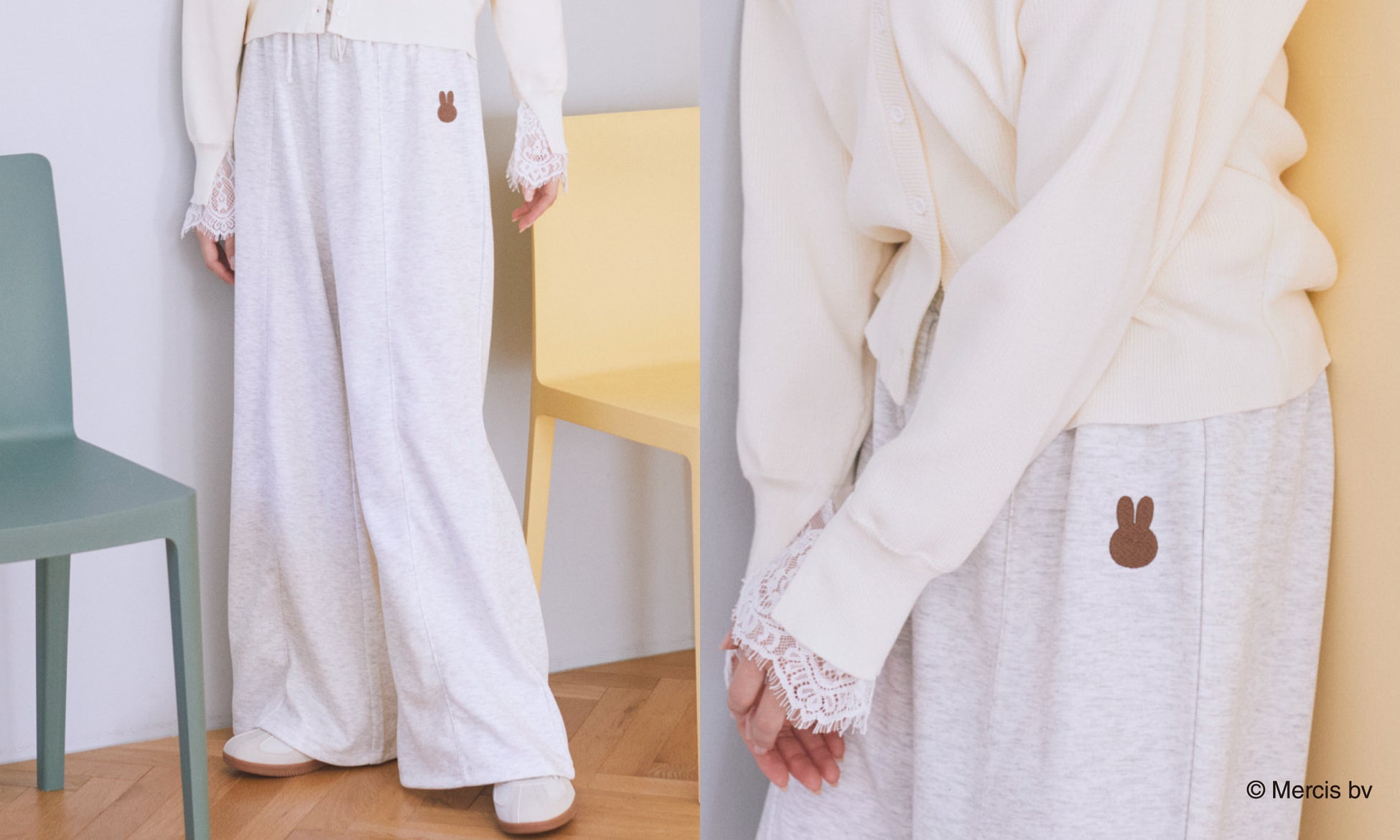 スウェットパンツには、ミッフィーのシルエットをワンポイントで刺繍し、大人でも取り入れやすいアイテムに仕上げました。また、おうち時間のリラックスタイムに足元を温かく包み込んでくれるモコモコソックスもご用意。