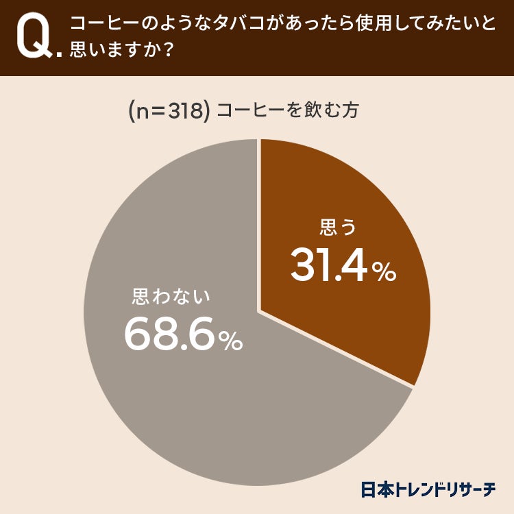 31.4%と3割以上の方が、コーヒーのようなタバコがあったら使用してみたいと「思う」と回答しています。