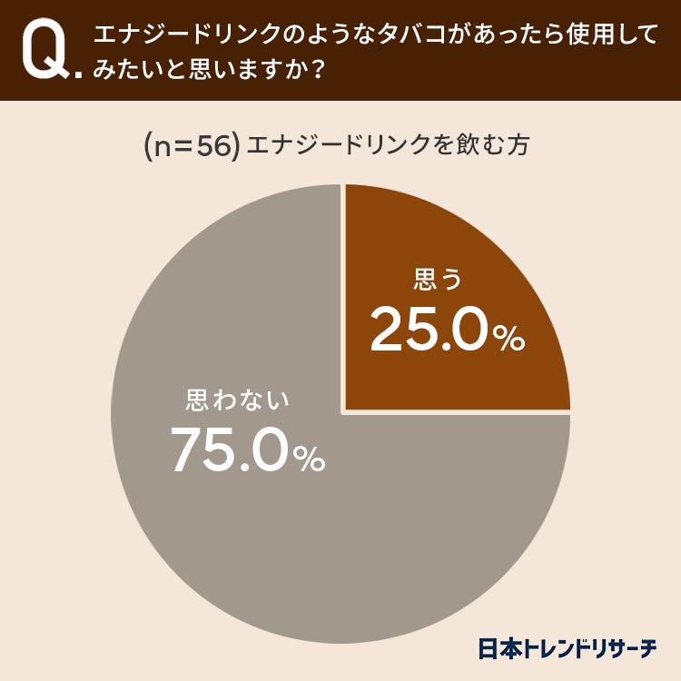 25%の方が、エナジードリンクのようなタバコがあったら使用してみたいと「思う」と回答しています。