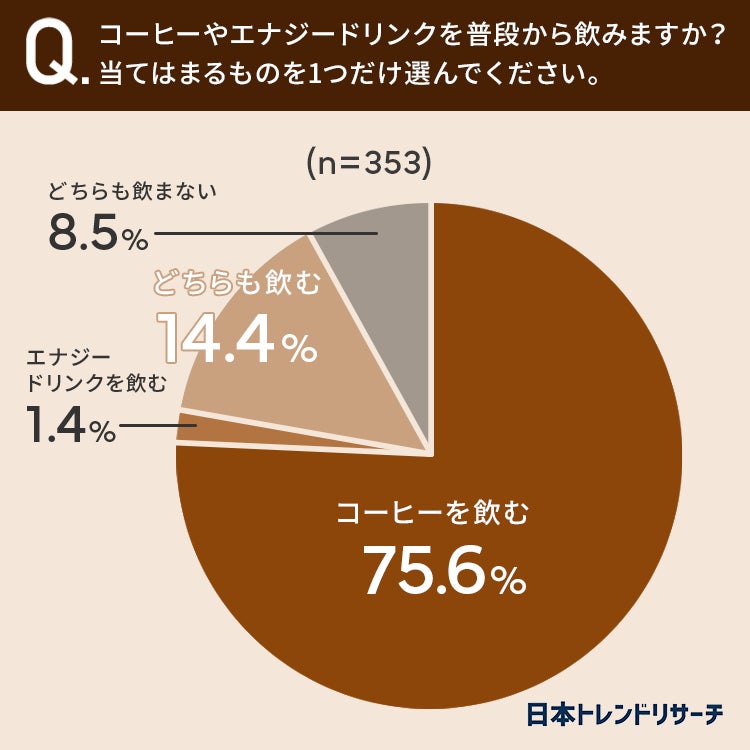 9割の方がコーヒー、15.8%の方がエナジードリンクを飲んでいるという結果になりました。