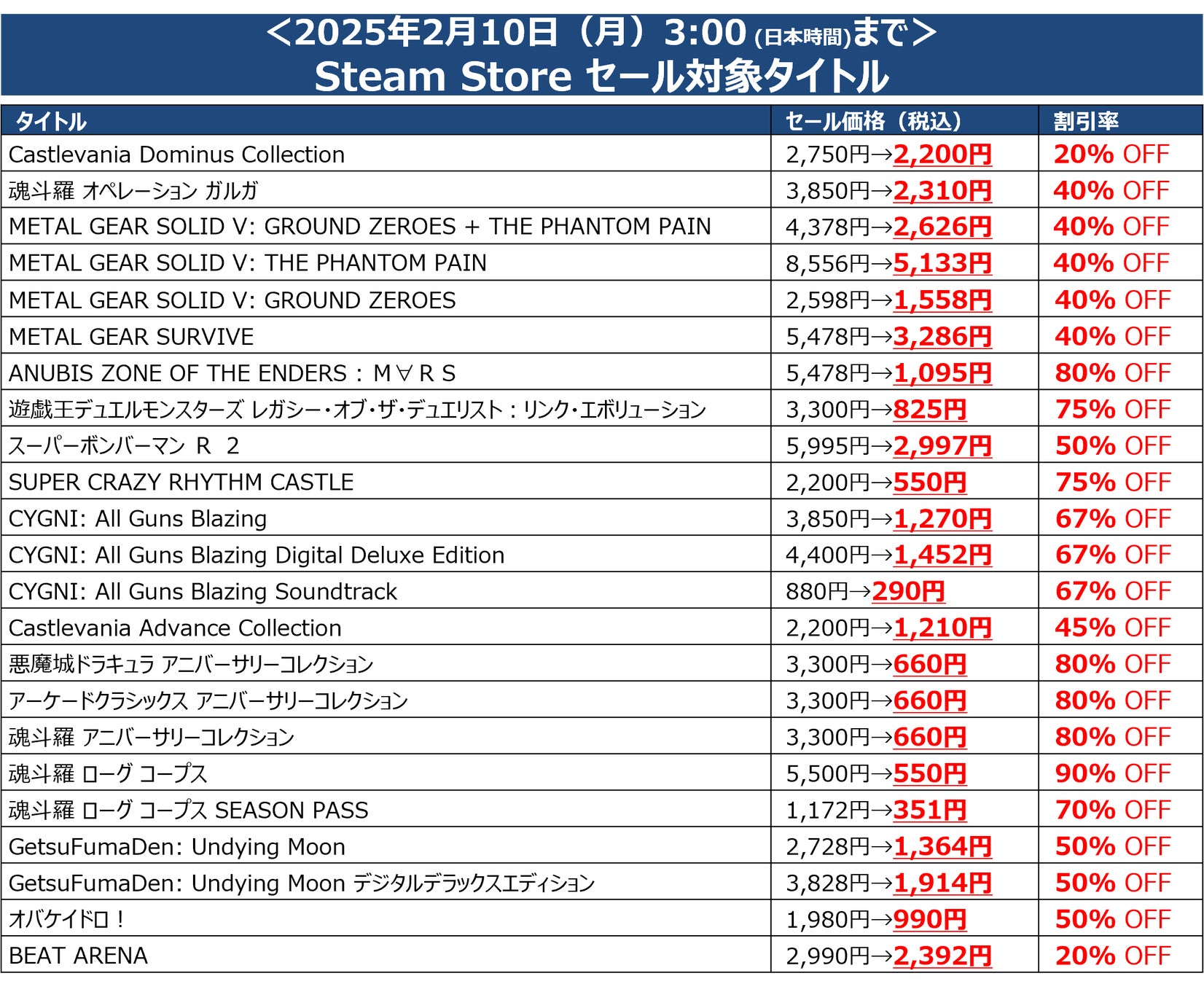 KONAMI「February SALE」Steam特設サイト