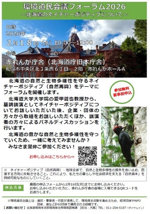 「環境道民会議フォーラム2026~北海道のネイチャーポジティブについて~」を開催します!