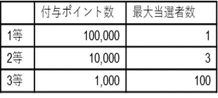 ・特典:抽選で付与するポイント数と当選者数は以下となります。