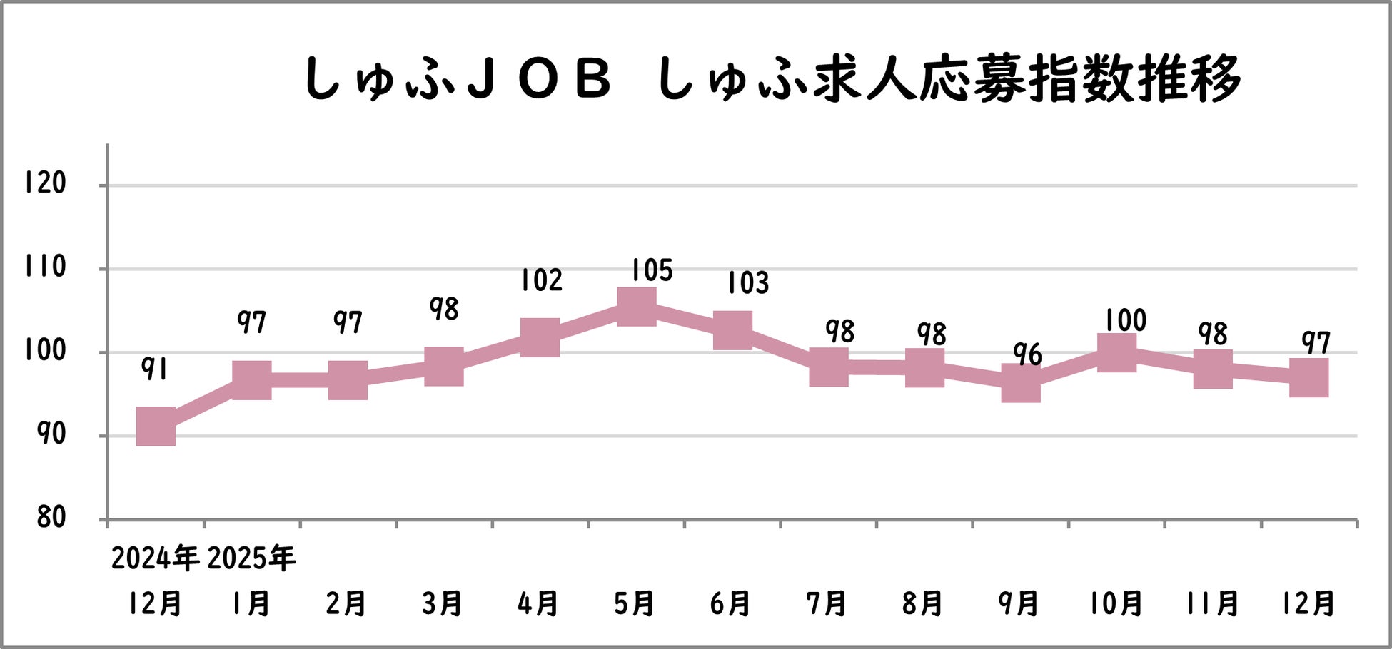 【しゅふの就職意欲調査 2025年12月】しゅふ求人の応募指数97(前月比-1)