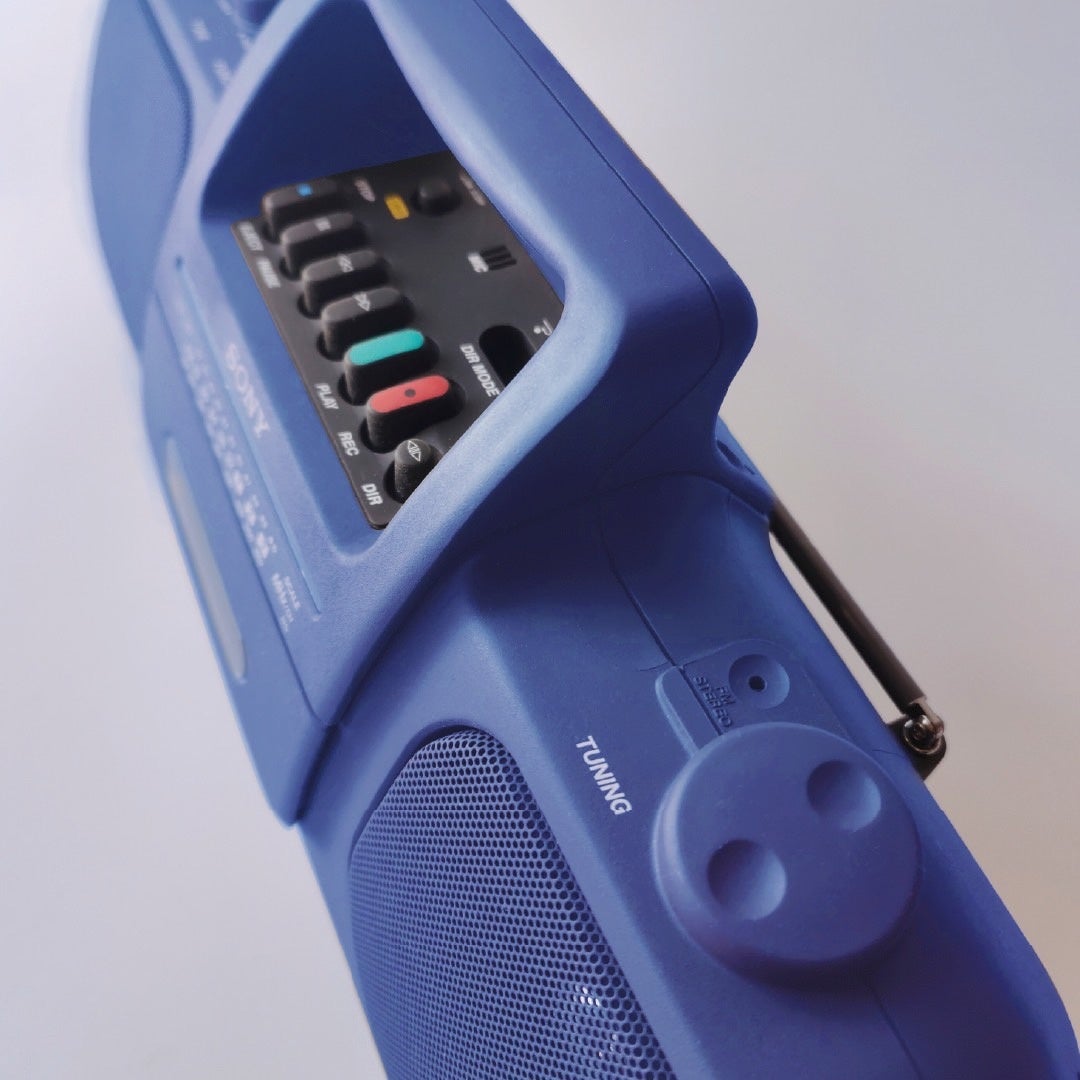 1980年代から1990年代の「SONY」製カセットプレーヤーを、現代に蘇らせるイメージで仕上げられています。