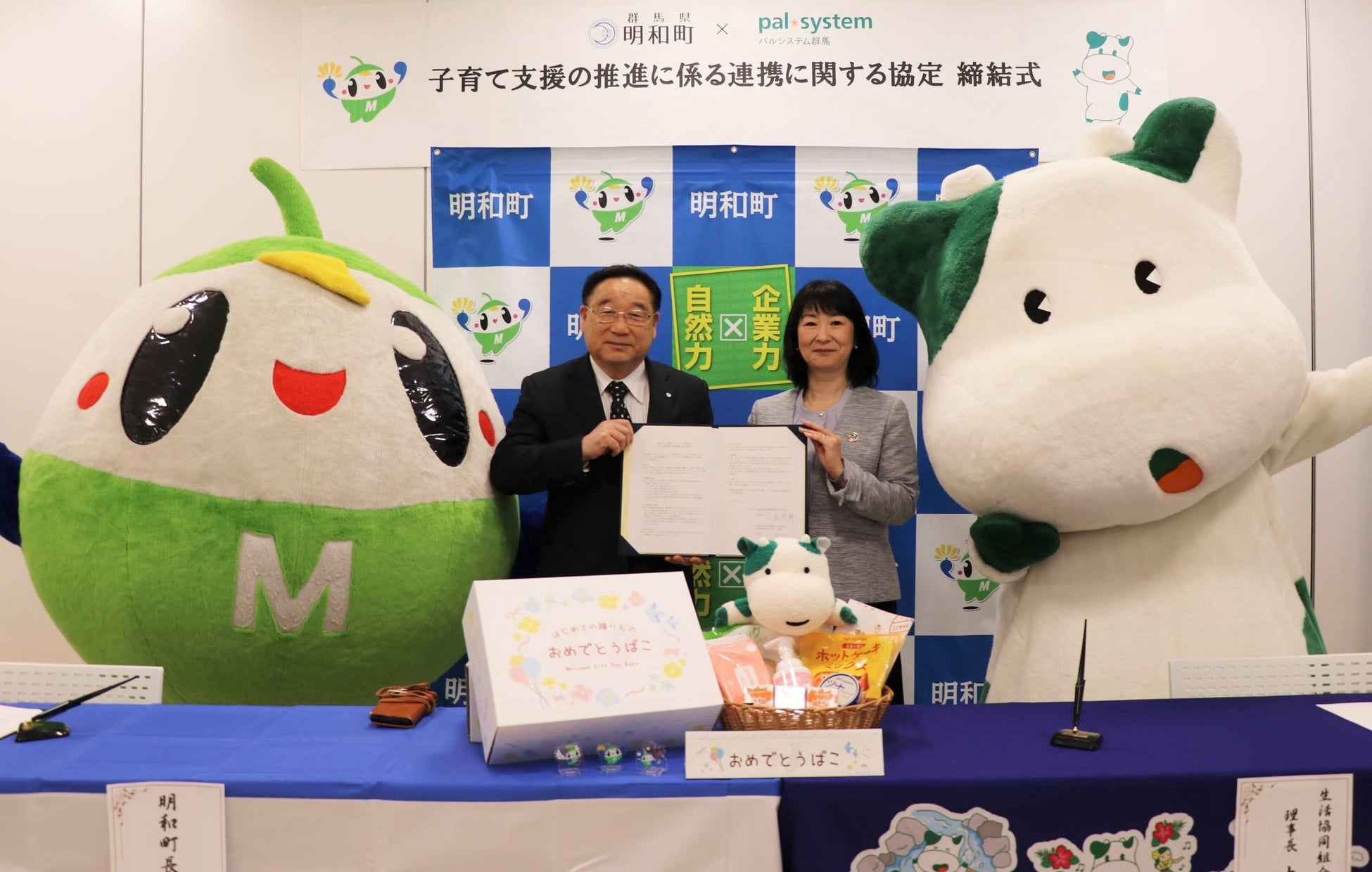 生活協同組合パルシステム群馬(本部:高崎市中大類町、理事長:大平真紀子)は2月、明和町(冨塚基輔町長)、みなかみ町(阿部賢一町長)、中之条町(外丸茂樹町長)の3町と「子育て支援の推進に係る連携に関する協定」を締結しました。協定に基づき、申請した子育て世帯へ育児に活用できる商品を詰め合わせた「おめでとうばこ」のプレゼントを開始します。行政と生協の協同により、子育て応援サービスを地域の誰もが受け取れる環境づくりを推進します。