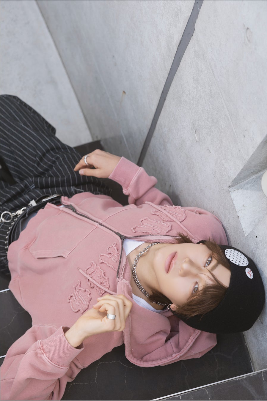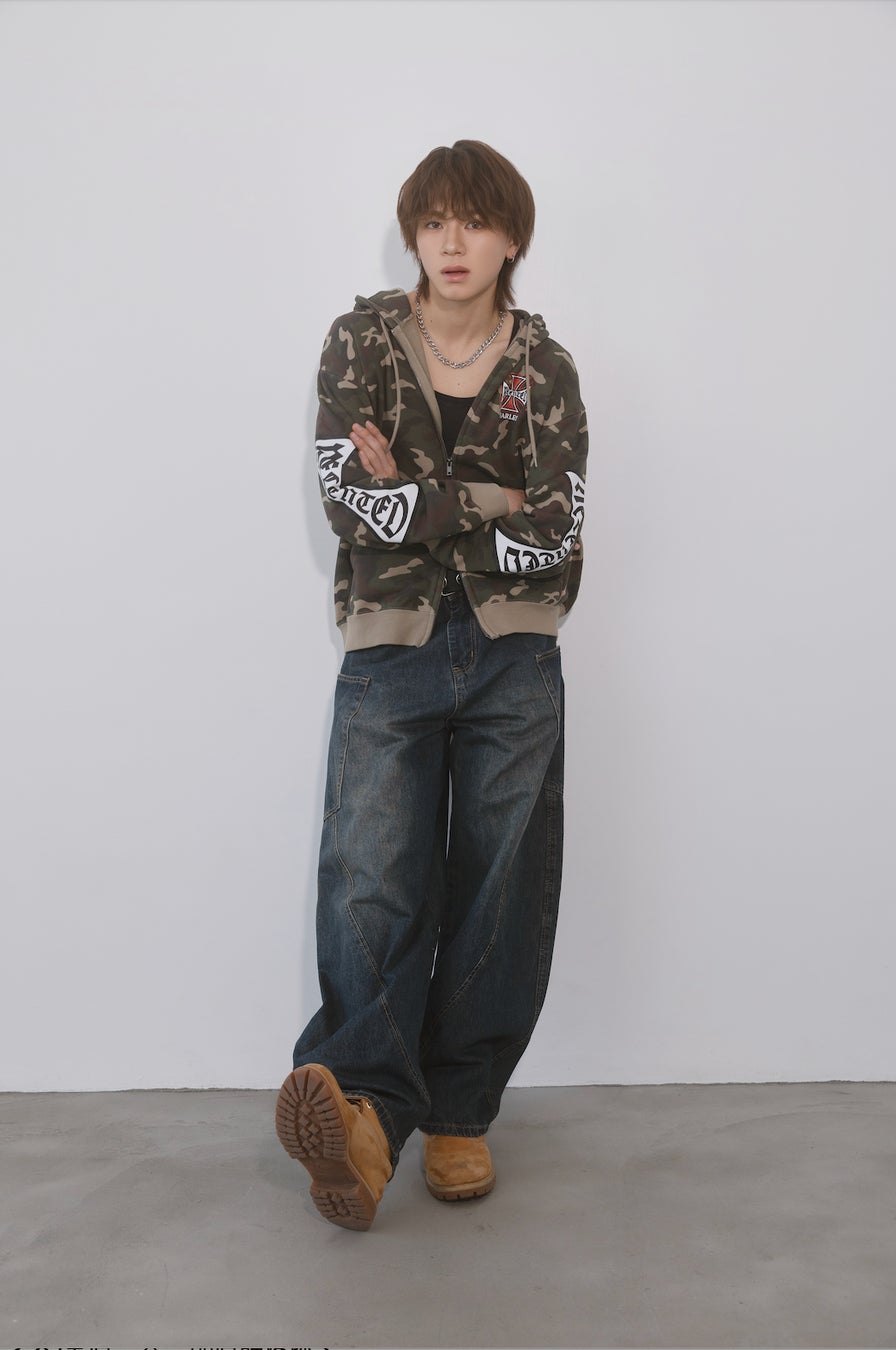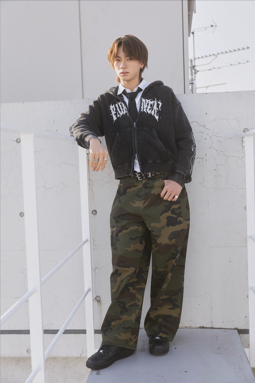 ジャストサイズで着れる短丈のジップパーカーにバルーンパンツを合わせたり、存在感のあるベルトやアクセサリー使いがポイントです。