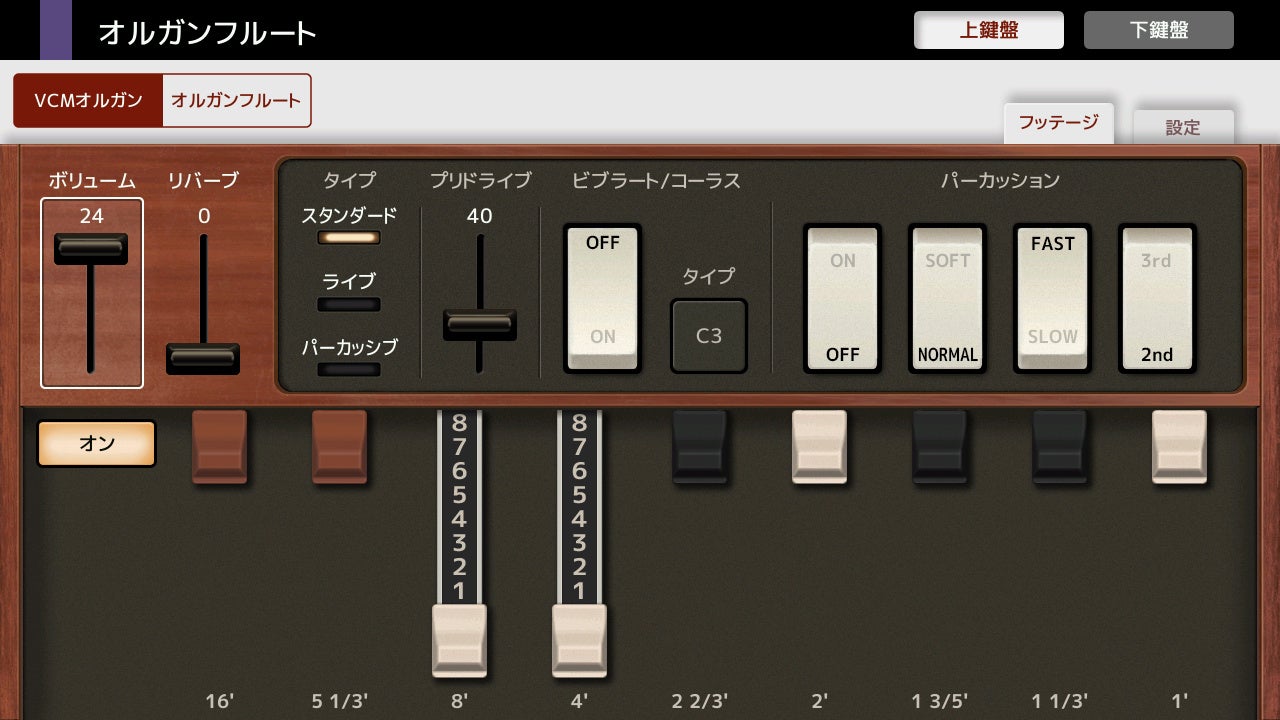 VCMオルガン音源は、ビンテージ機材の音の仕組みを部品レベルで細かく分析し、デジタル上でトーンホイール方式のビンテージオルガンを忠実に再現しました。これにより、本格的なオルガンサウンドとロータリースピーカーエフェクトをお楽しみいただけます。また、9本のスライダーをドローバーとして操作できるため、音の立ち上がりから余韻まで、ビンテージオルガンならではのサウンドを堪能できます。豊富な音色やリズムとともに、演奏者の創造性を解き放ちます。