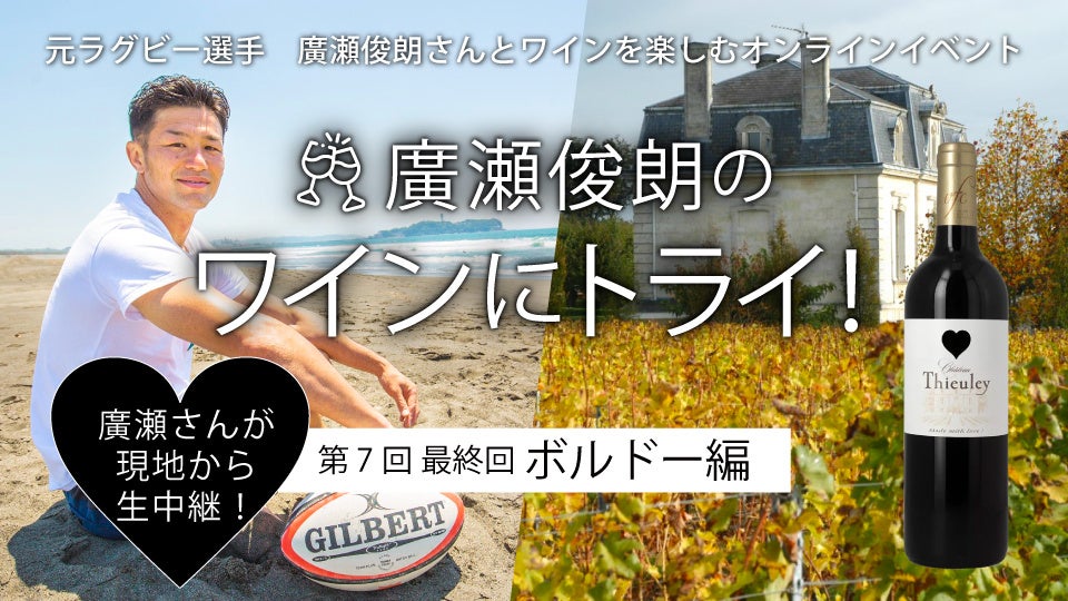 2021年秋にスタートした本イベントは、世界各国のラグビーとワインをテーマに、これまで「フランス・ボルドー」「南アフリカ」「オーストラリア」「イタリア」「アルゼンチン」「ニュージーランド」と、計6回のイベントを2年に渡って開催してきました(ニュージーランド編は8/26開催)。最終回となる第7回では、シリーズ第1回で登場した、廣瀬さんの友人であり、熱烈なラグビーファンのネゴシアンのローラン・ボネさんとボルドーのシャトー・テューレイを訪問し、ワインの生産現場を廣瀬さんが現地からリポートをするとともに、熱いラグビートークを交わします。