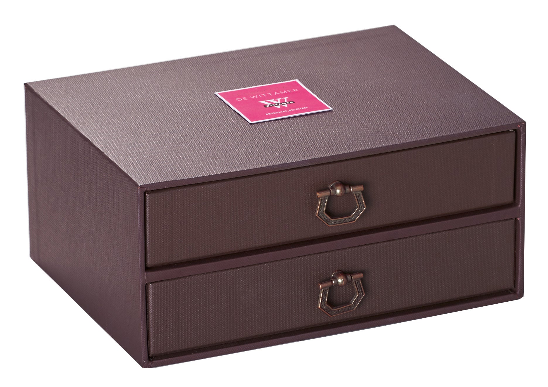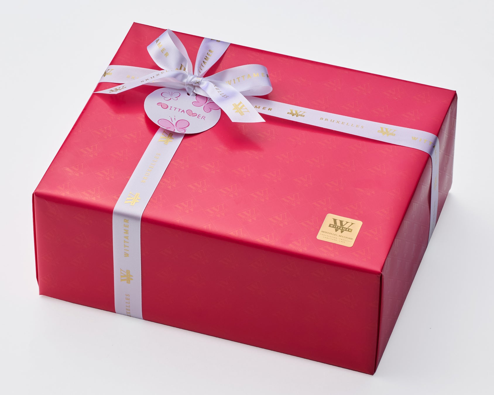 多彩な味わいのプラリネショコラに、ガナッシュに豊かな味わいを楽しめるトリュフとパヴェ ド ショコラを加えた、ヴィタメールのショコラを堪能できる一箱。やさしい甘みとコクのあるホワイトチョコレートガナッシュをとじ込めた「トリュフ・ブラ ン」と「クール・ルージュ」の期間限定ショコラが入った特別な詰め合わせです。16個入と20個入は華やかな蝶のデザインスリーブで、24個入と40個入は高級感のある2段の引き出しタイプのお箱に蝶の限定タグをお付けしてご用意いたします。