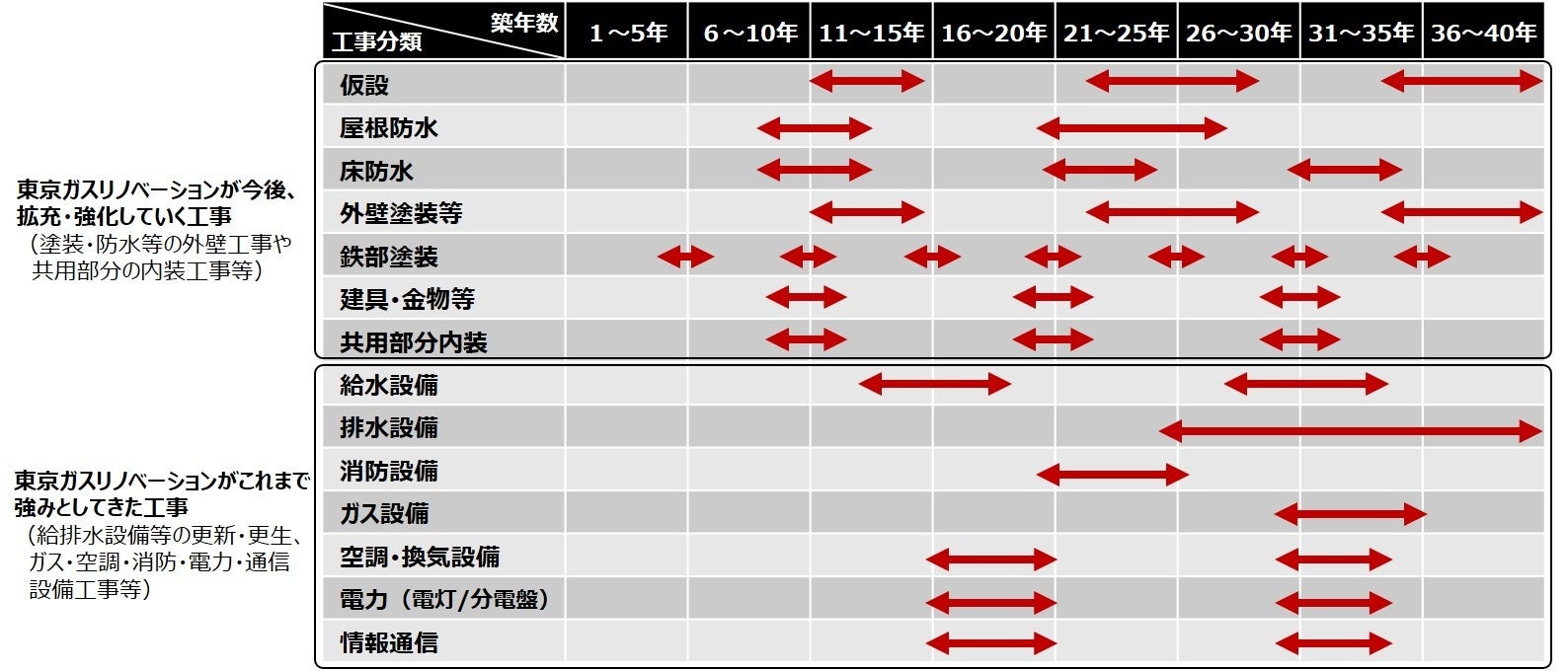 東京ガスリノベーションは、これまで、専有部のリフォーム工事に加え、マンション修繕工事のうち、給排水設備の更新・更生工事や、ガス・空調・消防・電力・通信といった各種設備工事等を提供してきました。このたび、これらに塗装・防水工事等が加わることで、より総合的なソリューションを提供できるようになることから、マンションのライフサイクルに、より長期間にわたり伴走し、マンション所有者や管理組合のみなさまが抱えている、修繕に対する不安や工事管理負荷の軽減に貢献していきます。また、脱炭素社会の実現に向けた太陽光発電の設置等、付加価値のある提案も引き続き進めていきます。