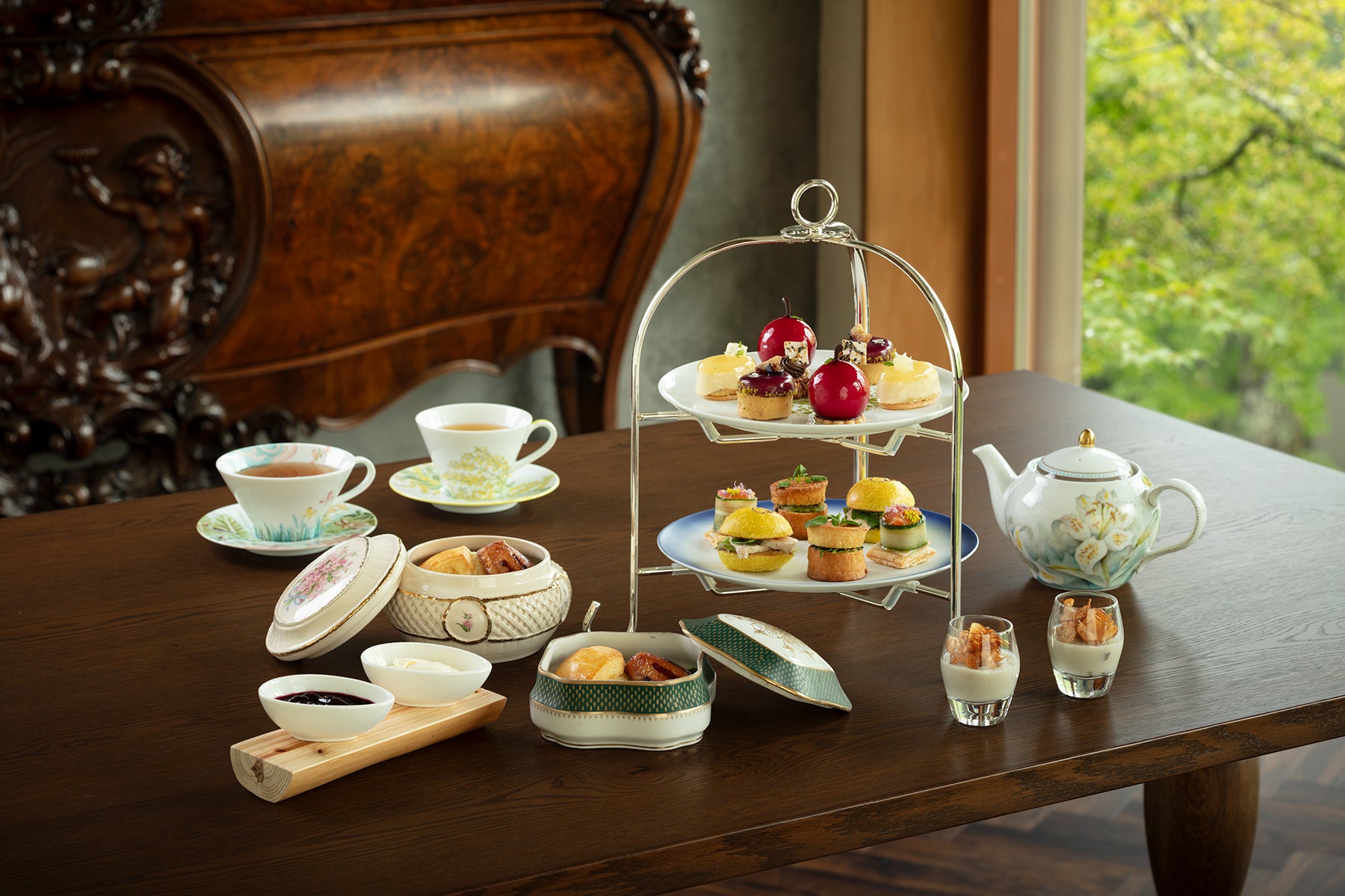 ひとつめは、四季の景色を閉じ込めたかのような“箱庭”アフタヌーンティー。
