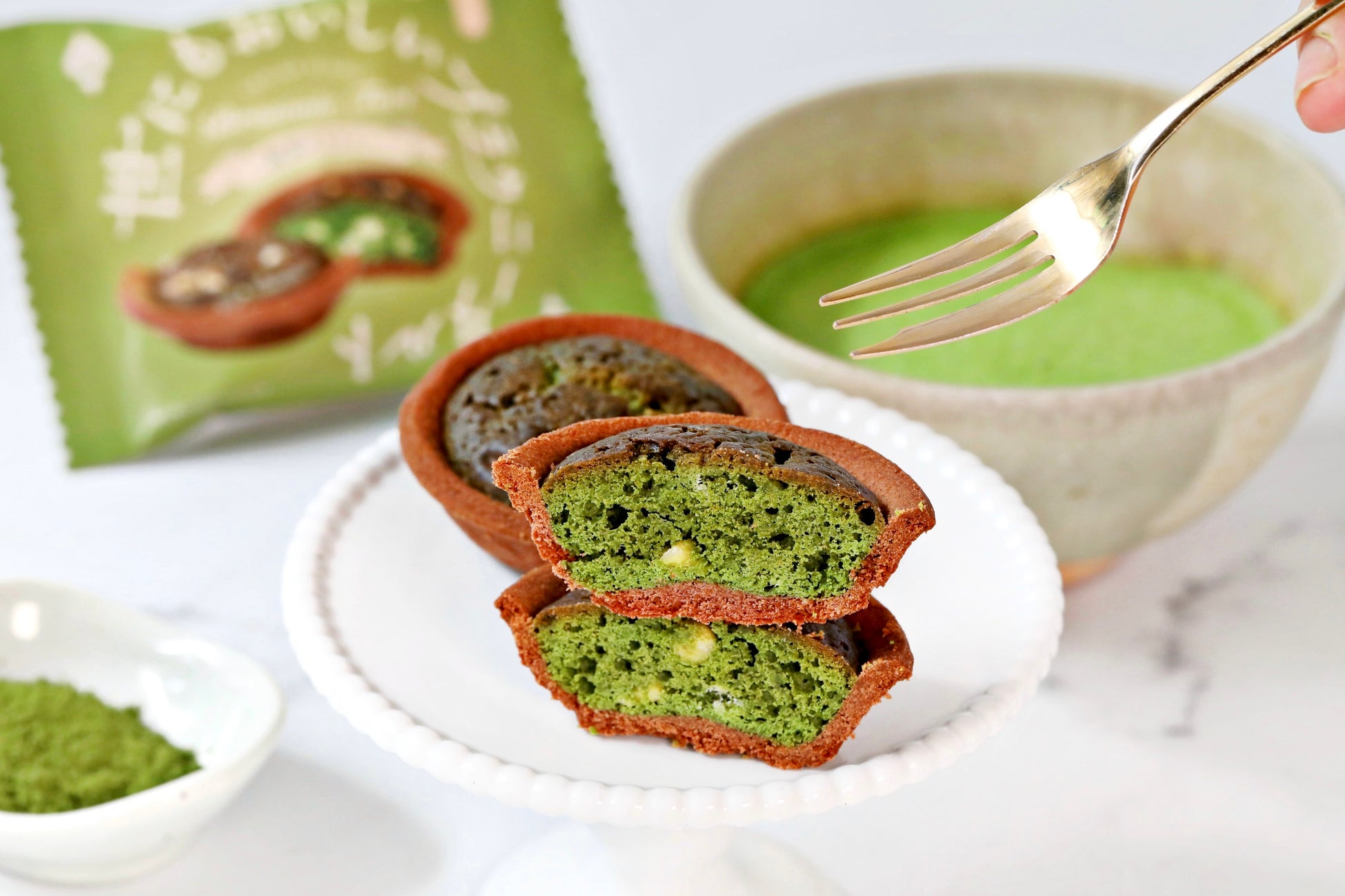 た。サクほろ食感のタルト生地と、しっとりコクのある抹茶風味のブラウニー生地が相性抜