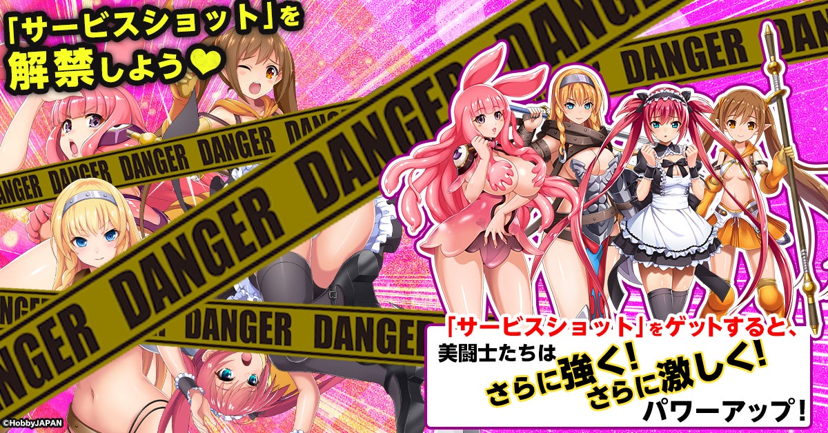 また、一部美闘士のサービスショットは、強化をすることで、さらに激しい姿へと変化します。美闘士たちの様々なポーズ・衣装を心ゆくまでお楽しみください。