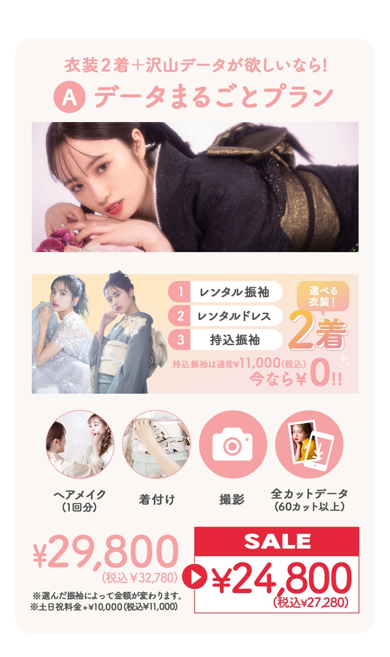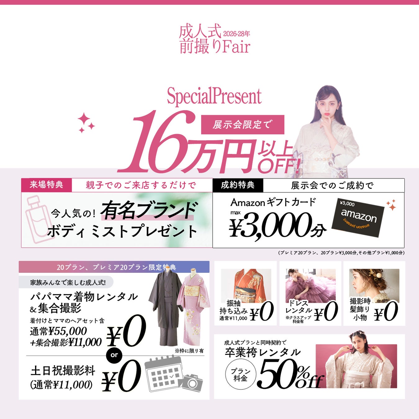 近年、成人式の式典への参加有無に関わらず、ご自身のペースで、かつ可愛く二十歳の瞬間を写真に残したいと願う方が増えています。本フェアはそのような想いを持つ皆様が、まさに「自分史上最高の私」を叶えるための特別な機会として企画いたしました。