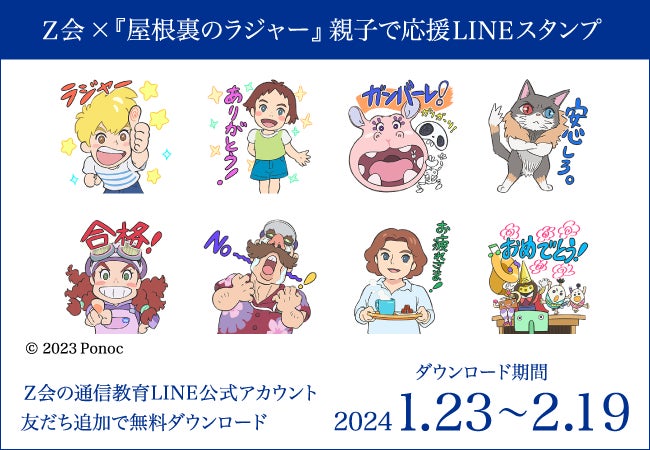株式会社増進会ホールディングス(Z会グループ)のグループ会社である株式会社Z会は、タイアップ中の映画『屋根裏のラジャー』のキャラクターを使用した全8種類のオリジナル無料LINEスタンプを配布中です。