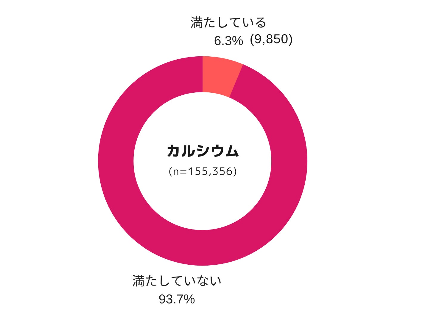 ■1日のカルシウム摂取量の目安を摂取できていない割合が9割以上!不足が顕著に表れる結果に