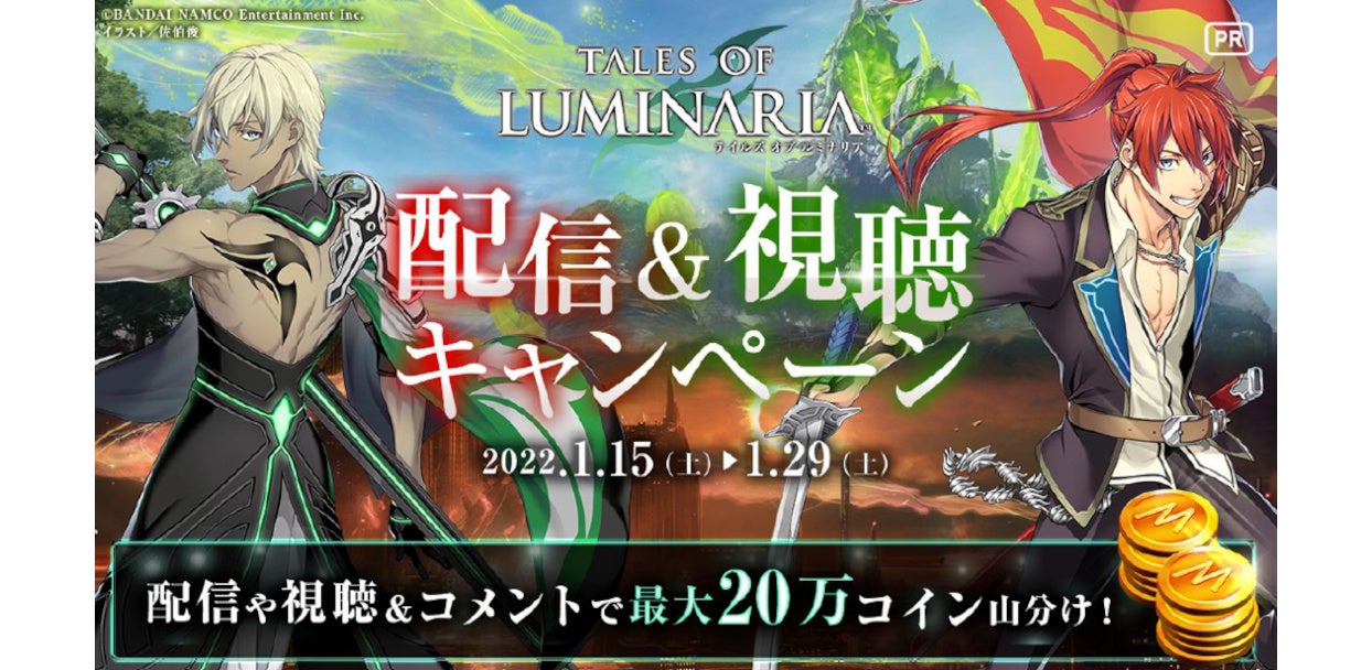 株式会社コロプラ(代表取締役社長:宮本貴志、本社:東京都渋谷区、以下「コロプラ」)は、株式会社バンダイナムコエンターテインメント(代表取締役社長:宮河恭夫、本社:東京都港区)と共同開発による、新作ゲーム『テイルズ オブ ルミナリア』(以下、『ルミナリア』)において、ゲーム配信アプリ「Mirrativ」にて配信&視聴キャンペーンを開催したことをお知らせします。