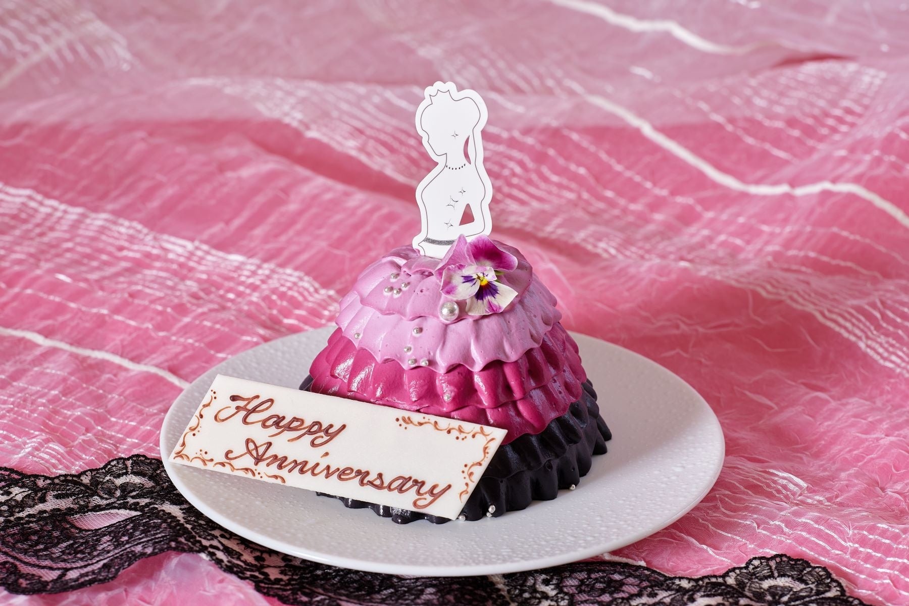 ドレスのグラデーションが美しい、いちごのプリンセスショートケーキをご用意。メッセージプレートもオプションで追加が可能なので、お誕生日や記念日、女子会など様々なお祝いのシーンでもご利用いただけます。