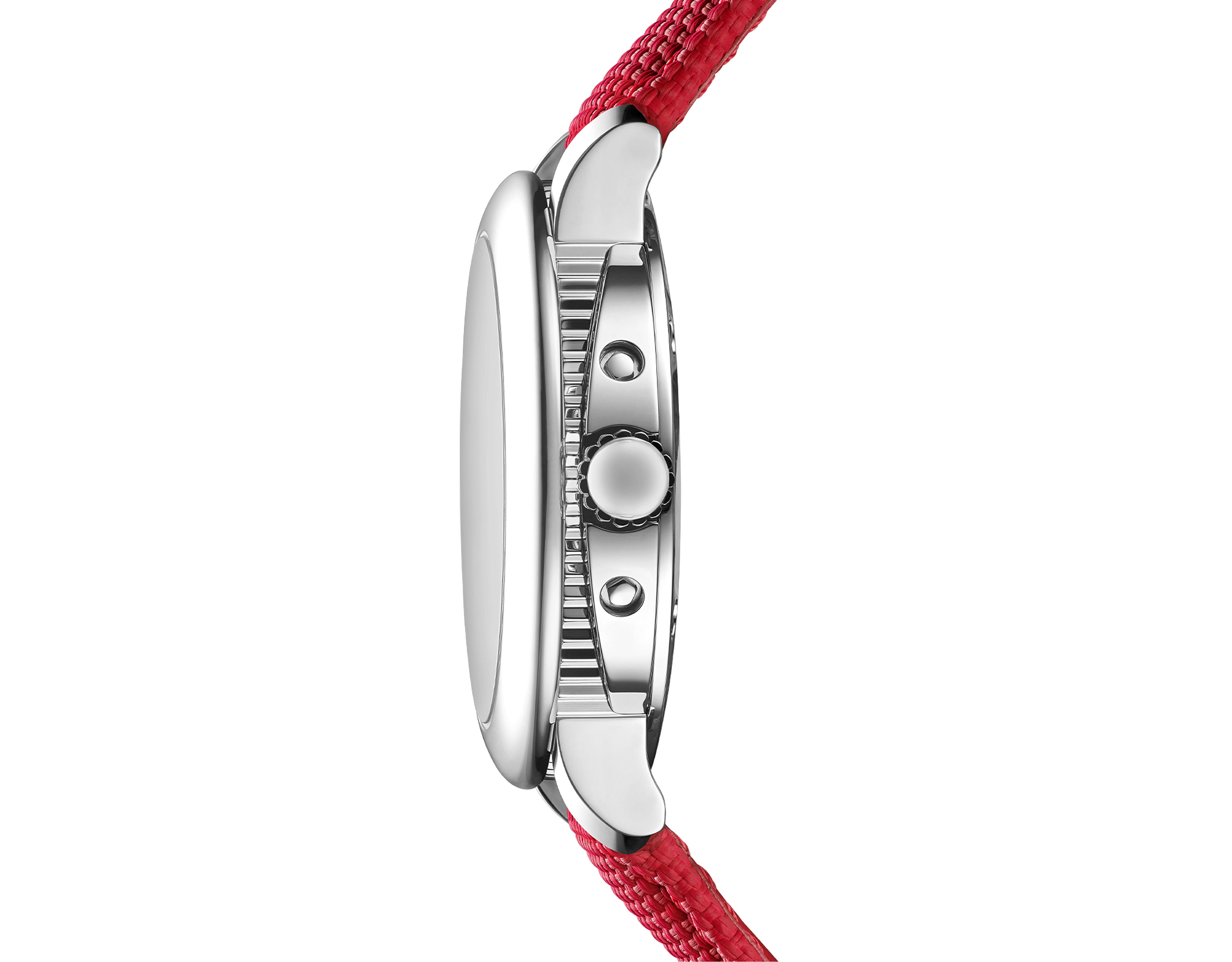 ダイヤル:マザーオブパール、ラッカー仕上げ210度レトログラード分針、180度レトログラード日針、10時位置にジャンピングアワー表示