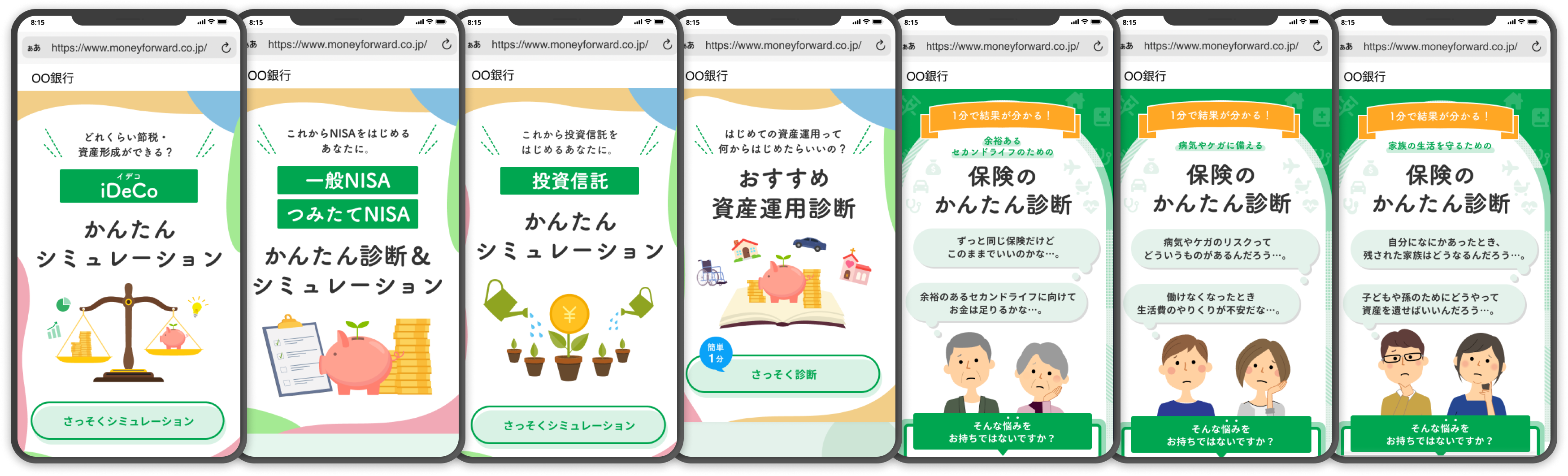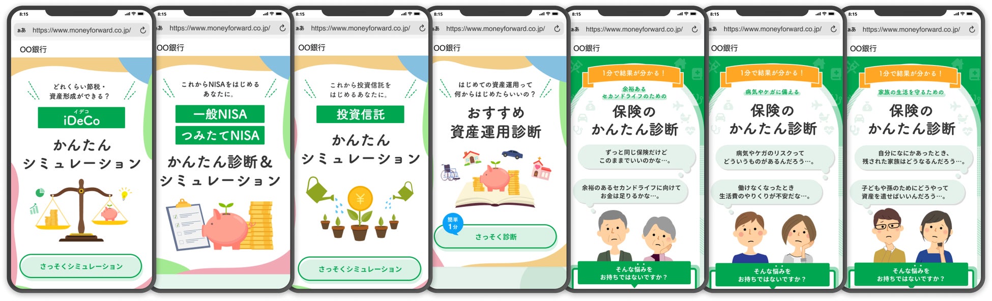 しかし、『XIM』で提示した金融商品に興味を持ったユーザーを契約につなげるためには、商品理解を深められるランディングページを用意する必要があります。そのようなページの作成にはWEBマーケティングの知見や一定のコストが必要とされるため、効果的なコンテンツ作成が難しいといった声が利用行から寄せられていました。そうした課題に対応するため、個人顧客向けに複数の金融サービスを提供してきた当社のノウハウを活かし、シンプルなUIで金融商品を分かりやすく提案できるコンテンツとして『XIM-Contents』を開発しました。本コンテンツは、『XIM』でのレコメンド実績で特に反響の大きい投資信託と保険について、運用シミュレーションや選び方の診断ができる7つのコンテンツから提供を始め、様々な金融商品を対象として順次コンテンツを拡充する予定です。また、本コンテンツはPCとモバイルいずれからも閲覧できるため、タブレットなどを利用して対面での接客時のツールとしても活用できます。
