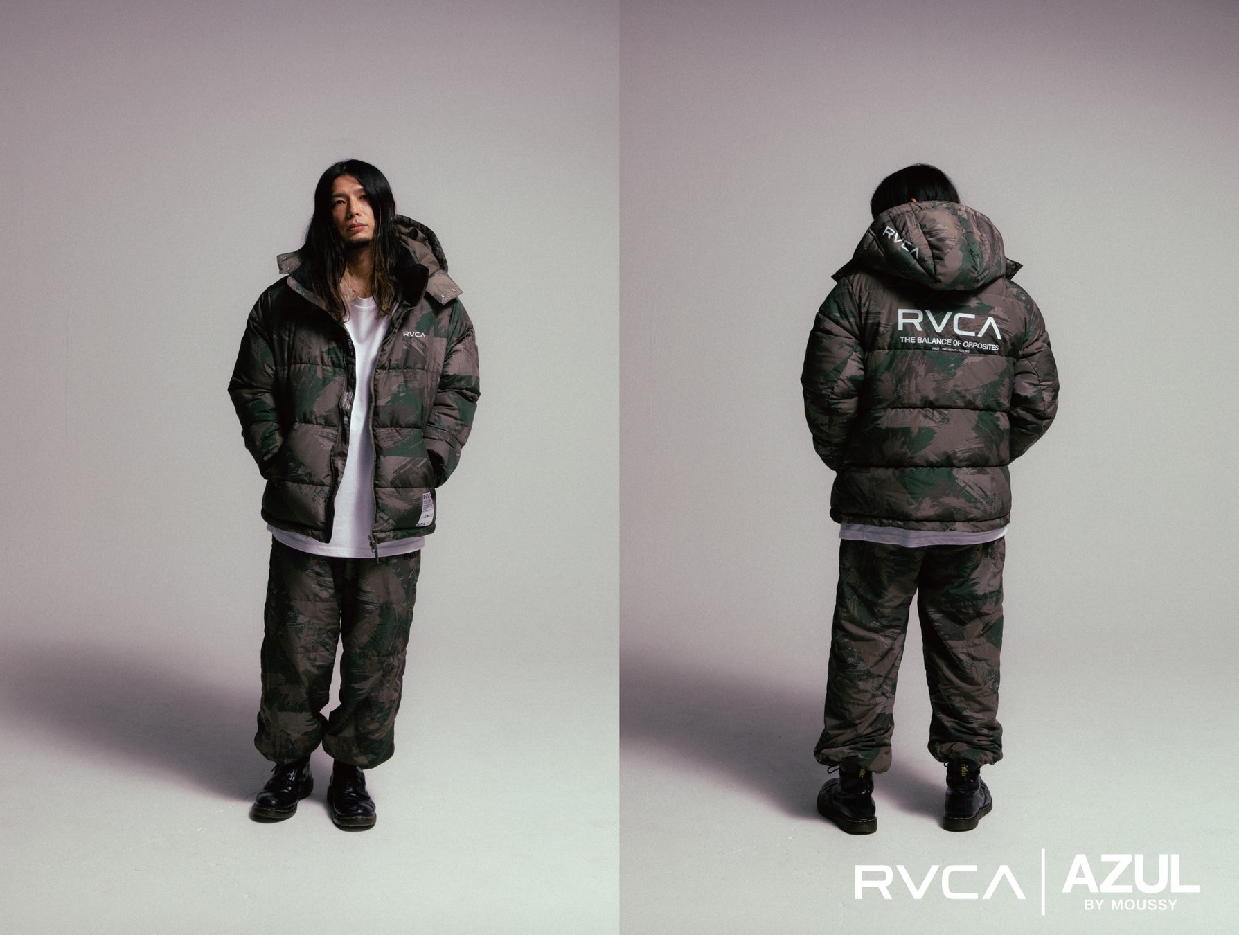軽量で動きやすいパファージャケットや、防風・撥水機能を備えたセットアップ、リバーシブル仕様のロングスリーブなど、全6型をラインナップ。RVCAの人気アイテムをベースに、コラボレーション限定のカモフラージュ柄やダブルネームタグを採用し、他にはない存在感を放つコレクションに。