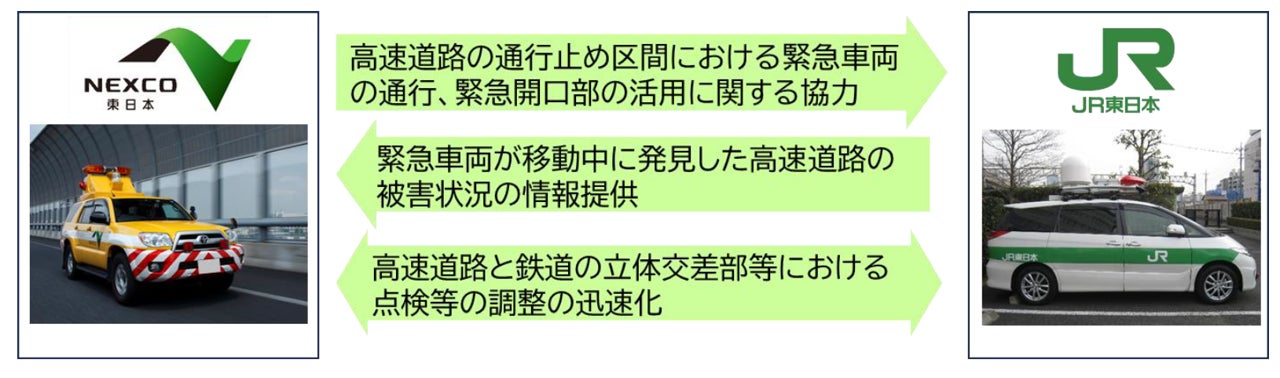 本協定の締結により、災害時における緊急車両等の通行に関する協力や被害状況の情報提供、立体交差箇所等における点検や応急復旧の調整の迅速化を図り、両社が管理する高速道路・鉄道の早期復旧、迅速な被災地復旧活動の展開を図ってまいります。
