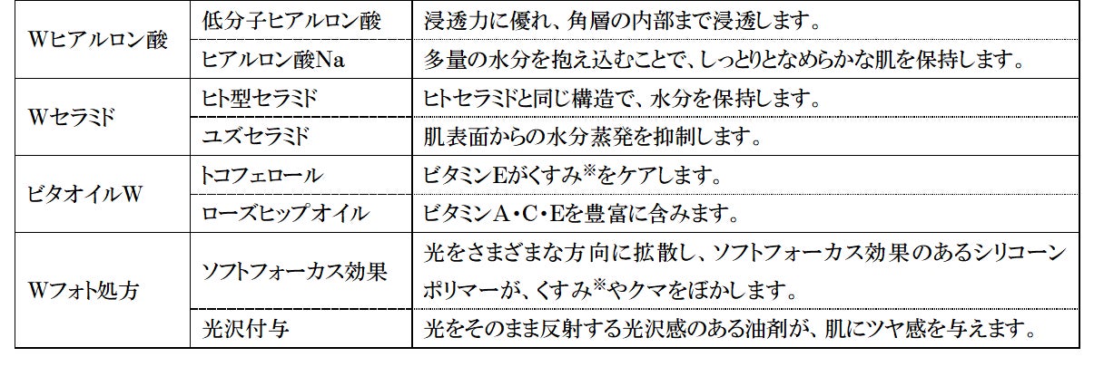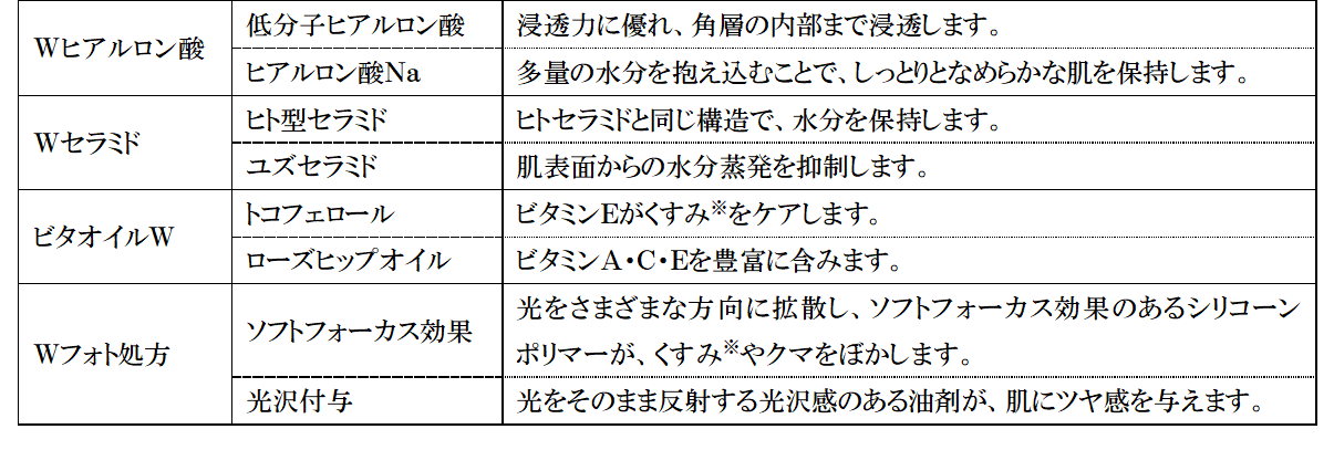 肌を明るくきれいに見せる「Wフォト処方」を採用しています。
