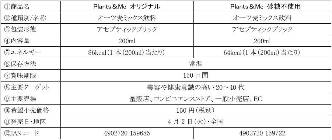 「Plants&Me オリジナル」「Plants&Me 砂糖不使用」4月2日(火)より全国にて新発売