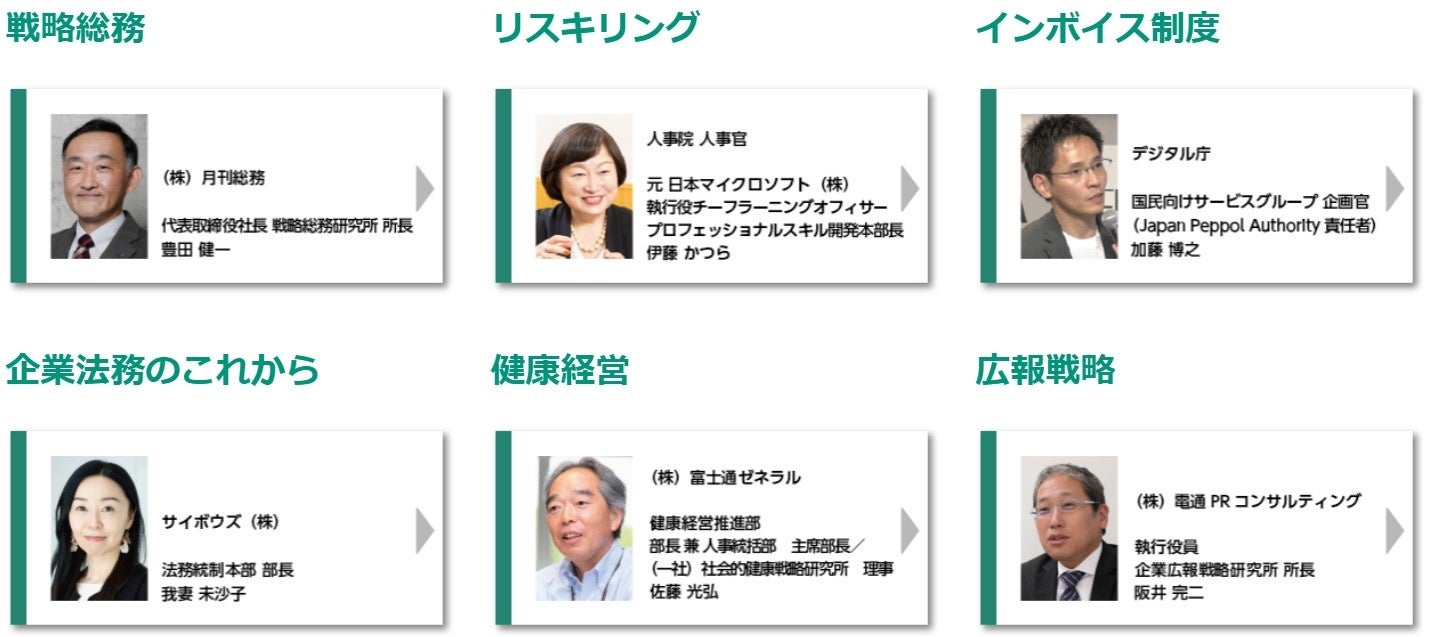 各分野の最前線で活躍する専門家が登壇するため、バックオフィスの最前線やトレンド・最新事例を学べます。