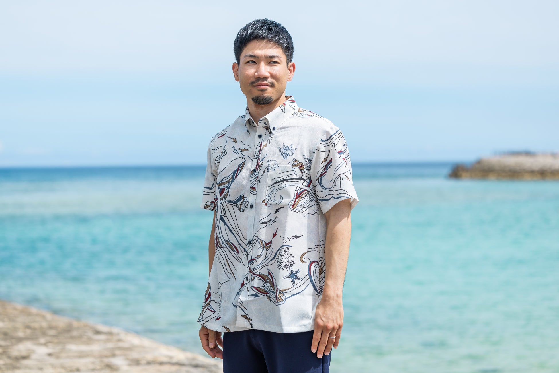 キングスかりゆしは、素材と着心地に徹底的にこだわり、一枚一枚を職人の手で縫い上げているMADE IN OKINAWA「MAJUN」ブランドのかりゆしウェアです。