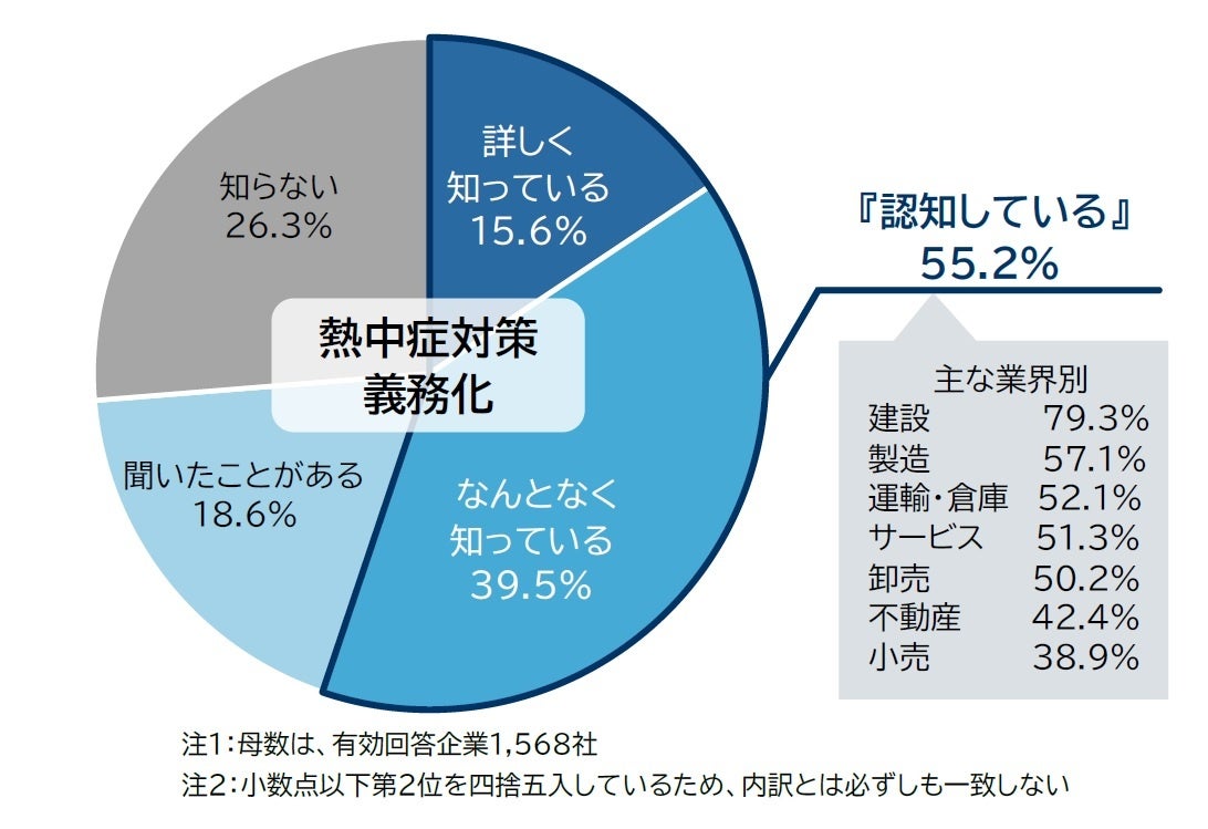 企業の半数超が「熱中症対策の義務化」を認知、特に『建設』で認知度高く