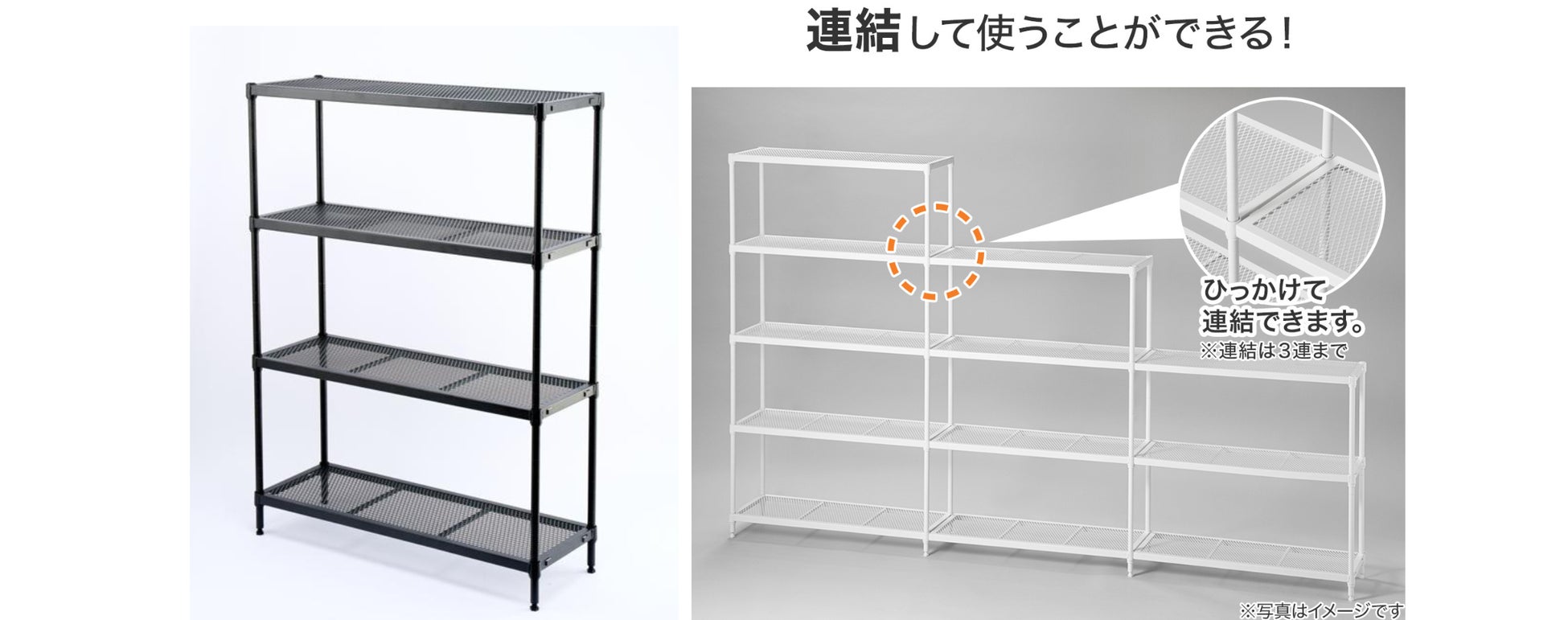 【商品名】(幅85cm) 連結可能なスチールラック (STメッシュ)