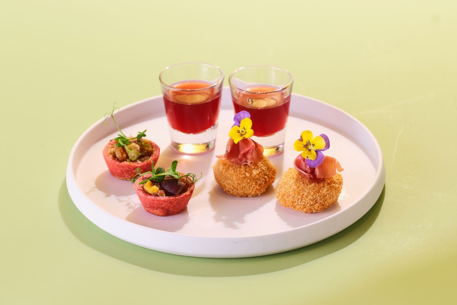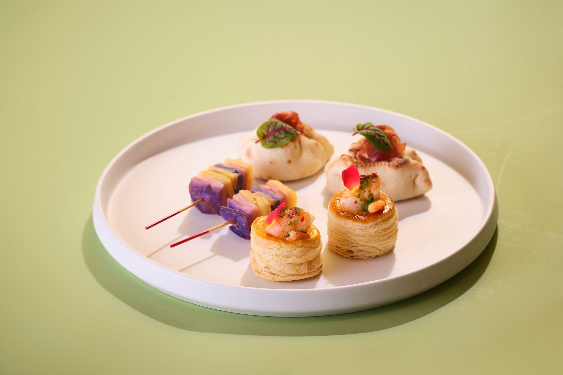 特製セイボリーは、ベーコンとかぼちゃの種をアクセントにしたくちどけ滑らかなかぼちゃのムースや、トリュフときのこのライスコロッケ、秋の味覚の栗を使用した一口キッシュ、4種のチーズの生ハムピッツァ、さつまいも・シャドークイーン・ノーザンルビーの3種ポテトのミルフィール仕立て、小エビとガーリックバターを詰めたヴォローヴァンの計6種類をご堪能いただけます。
