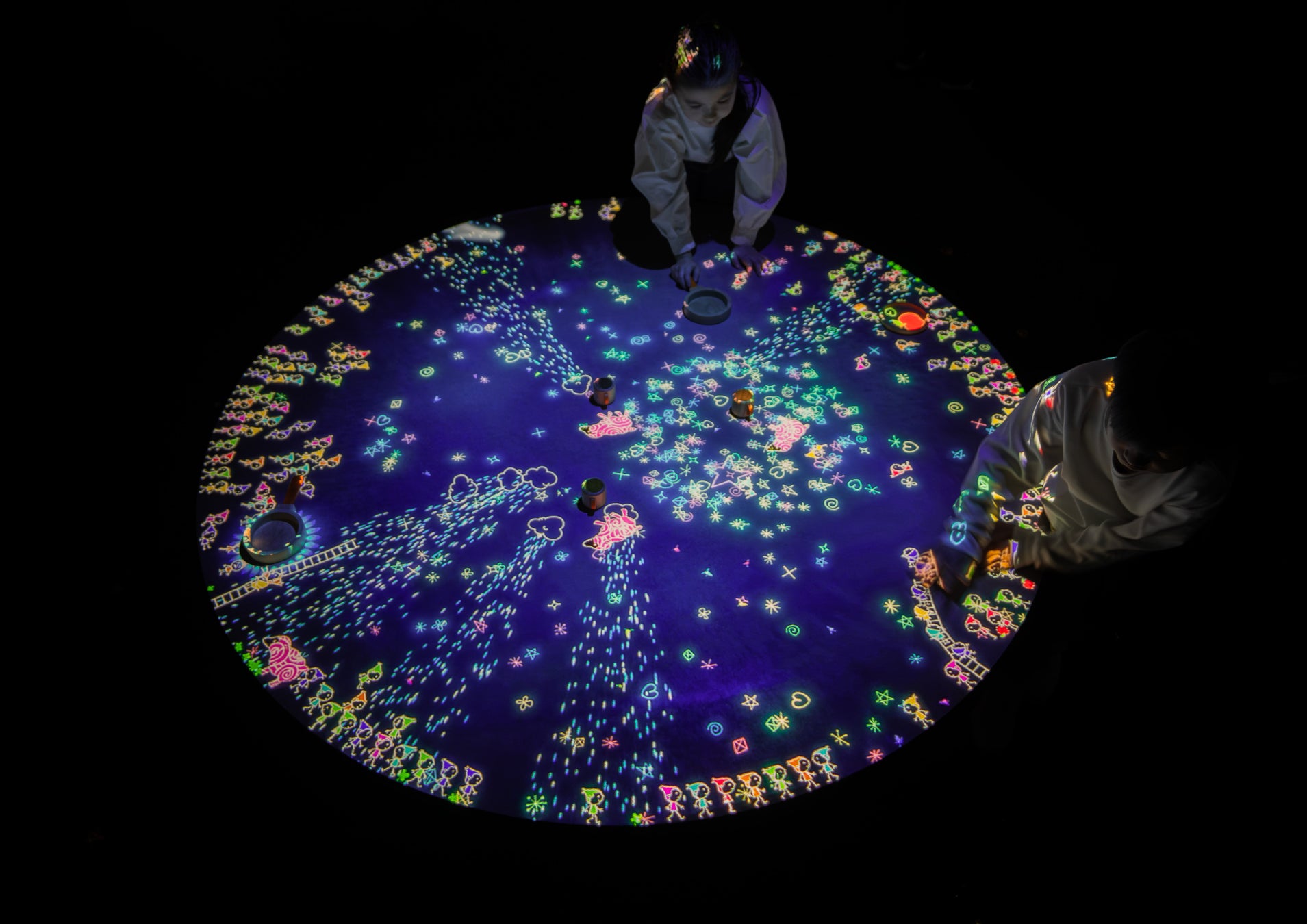 光のペンで線を描いたり、光のスタンプを押して、絵を描く。描かれた線は、色ごとに不思議な力を持っていて、こびとたちの世界に影響を与える。押されたスタンプは、こびとたちの世界に出現して、動き出す。