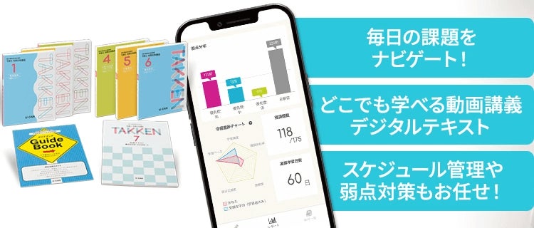 動画・テキスト・WEBテストでインプットとアウトプットを繰り返し、ムリなく知識を定着していきます。"解けた!"達成感で、楽しいから続けられる、続けられるから力がつく「やる気が継続する」学習の積み重ねで、効率よく合格力を育成します。