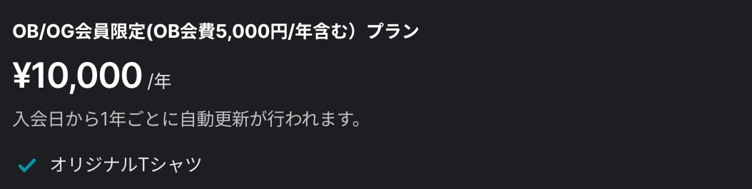 OB/OG会員限定(OB会費5,000円/年含む)プラン 10,000円/年間