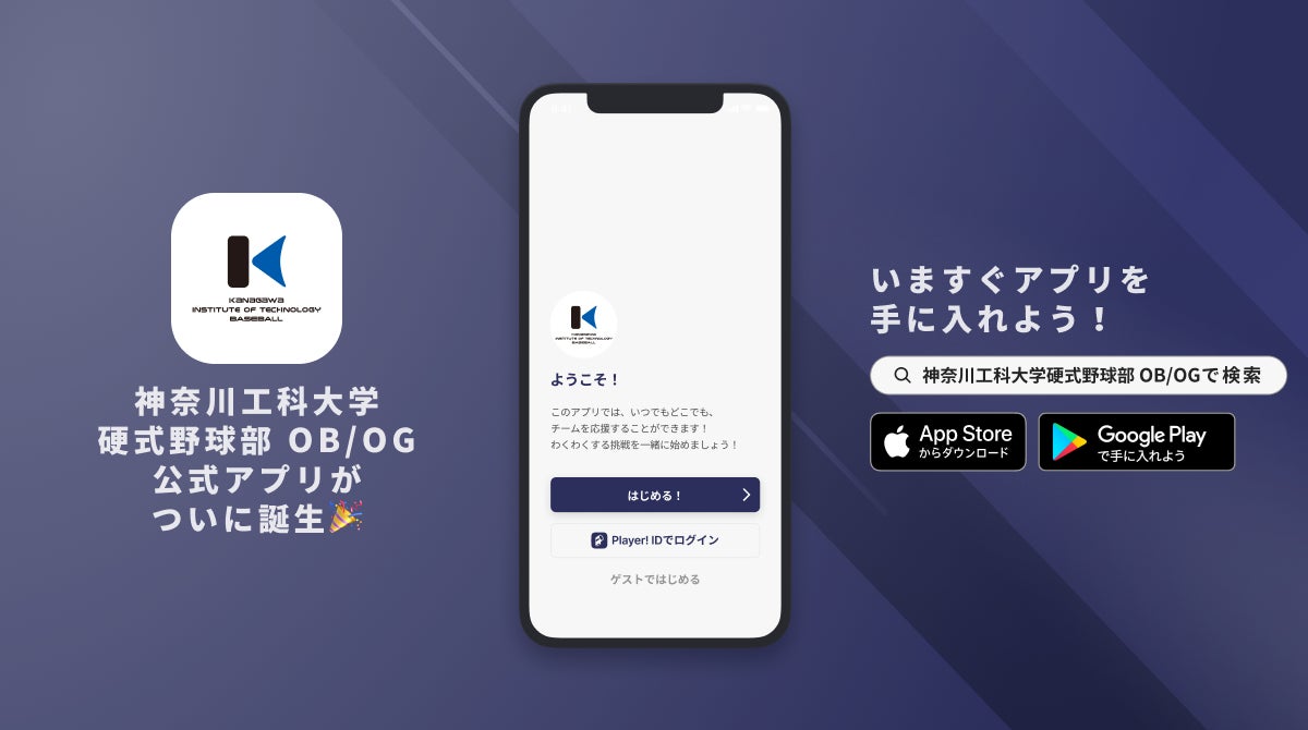 AppStoreもしくはGooglePlayで「神奈川工科大学硬式野球部 OB/OG」と検索!