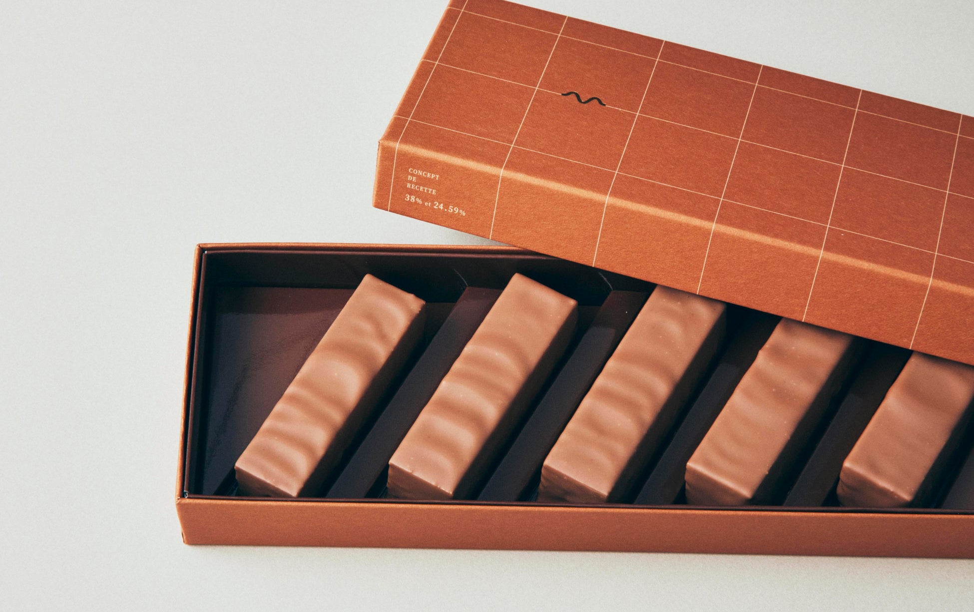 素材とチョコレートの一体感にこだわった、“記憶に残る” ショコラ・バー。トンカ豆の甘く上品な香り を移したガナッシュを、しっとりと濃厚なガトーショコラに重ね、オリジナルミルクチョコレートでひとつひとつ丁寧にコーティングしました。底に忍ばせたヘーゼルナッツのプラリネの食感と、マルサラワインの芳醇な香りをアクセントに仕上げました。移ろいゆく食感や華やぐ香りを、より深く、より贅沢にお楽しみいただけます。