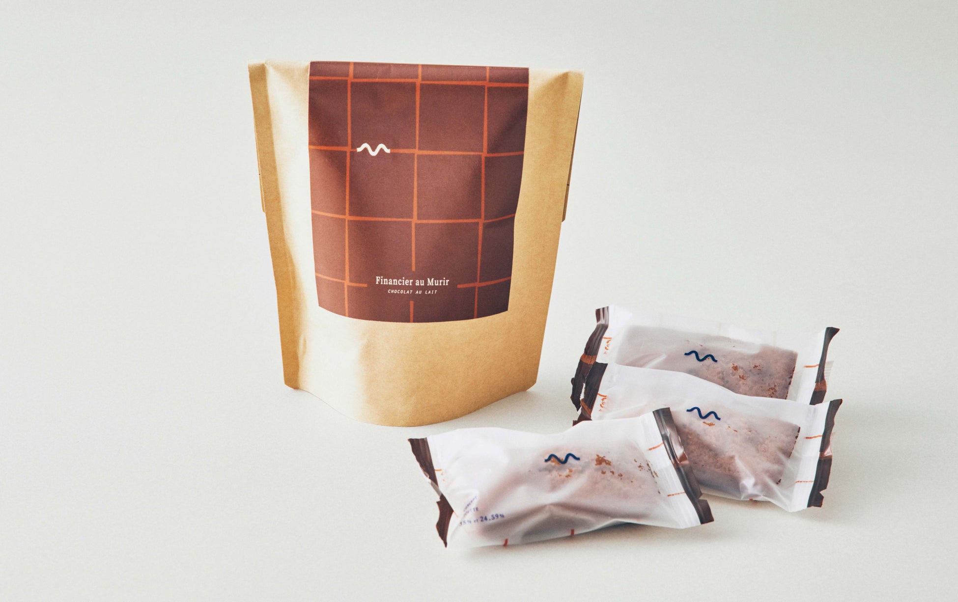 Murirのミルクチョコレートのおいしさを閉じ込めたショコラフィナンシェ。ヘーゼルナッツの香ばしさとミルクチョコレートを合わせたフィナンシェ生地に、ガナッシュをしぼって焼き上げ、さらにミルクチョコレートを半分だけかけて仕上げました。濃厚でありながらも、やさしく柔らかな風味。生地、ガナッシュ、コーティングチョコレート、全てにMurirのミルクチョコレートを使用した、Murirのおいしさを堪能できるフィナンシェです。