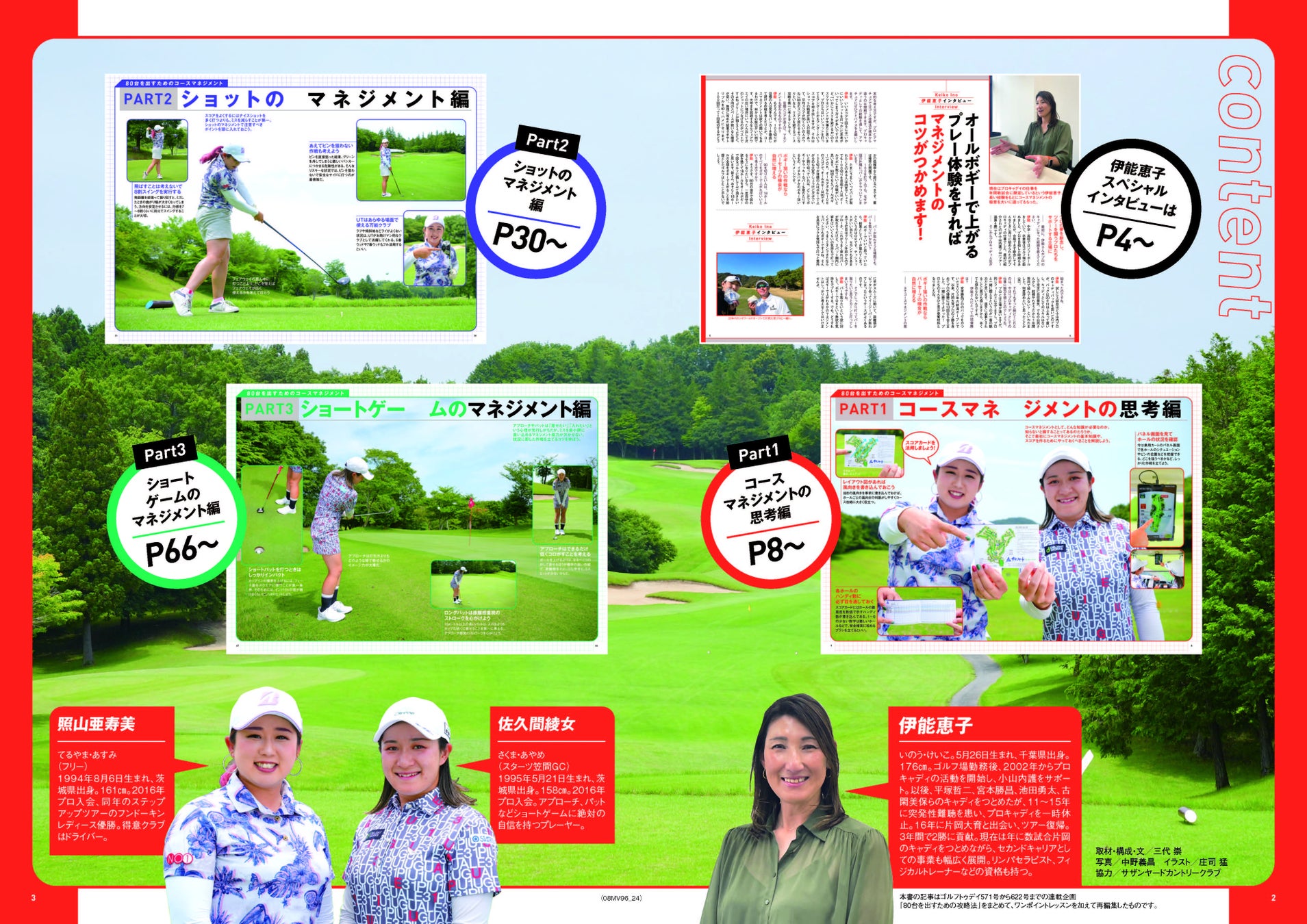 片岡大育プロなど多くのプロゴルファーのキャディとして優勝を支えてきたプロキャディの伊能恵子。言わずと知れた初の日本地図を完成させた伊能忠敬の末裔だ。そのDNAによるのか、正しい距離感や、どのように目的となるグリーンまでを攻略するかなどに長けている。プロへのアドバイスするプロのコースマネジメント術をあますとことなく語ってくれた、数少ないコース攻略の技を知ることができるムックです。これを知るだけで実際のコースの攻め方が変わり、10打得します!