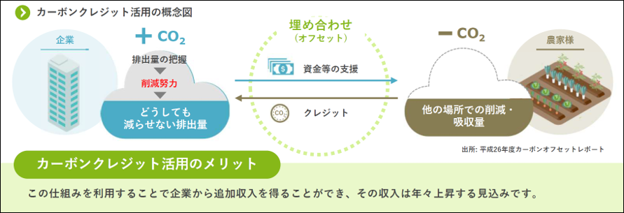 海外では「農家が温室効果ガスの発生を抑えるような農法を行い、その削減分をカーボンクレジットとして販売することで、地球環境への取り組みに対してお金が還元される仕組み」が推進されている。