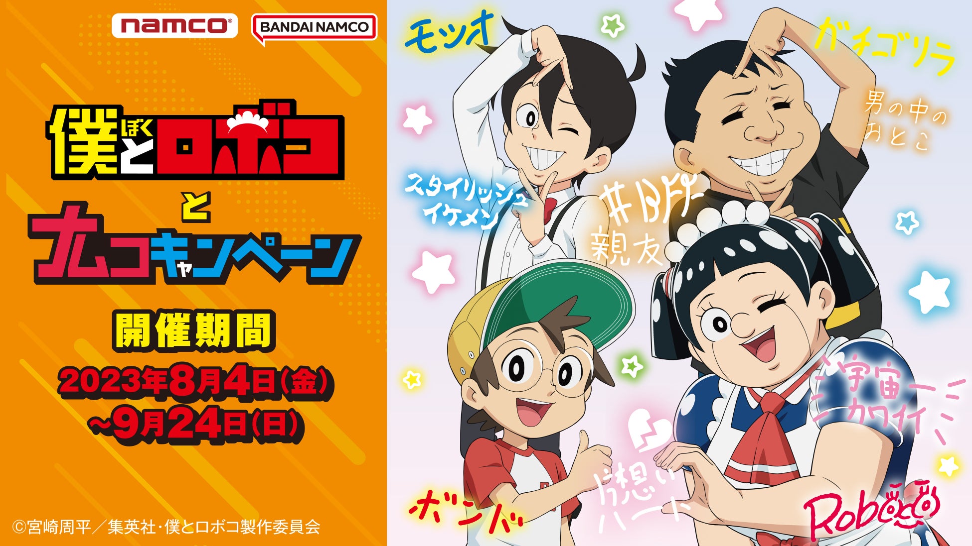 株式会社バンダイナムコアミューズメントは、TVアニメ「僕とロボコ」とのコラボキャンペーン「僕とロボコとナムコキャンペーン」を2023年8月4日(金)~2023年9月24日(日)まで、対象の直営アミューズメント施設「namco」で開催します。