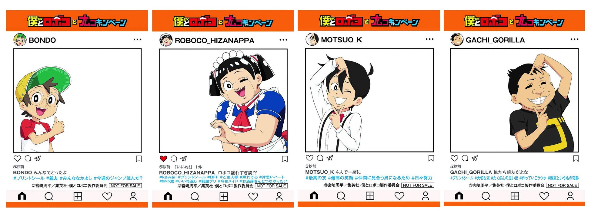 8月4日(金)から9月24日(日)まで、対象店舗で『僕とロボコ』関連景品が入ったクレーンゲーム機に500円を投入すると「SNS風クリアカード(全4種)」をランダムで1つプレゼントします。