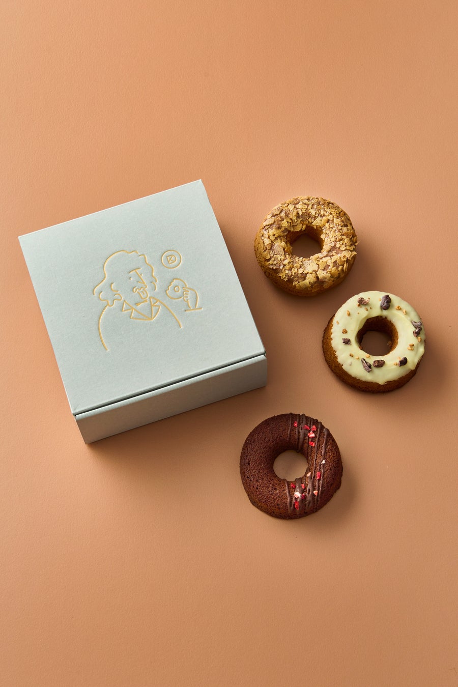 同日より、大切な人へのギフトや自身へのご褒美にもおすすめのショコラベイクドーナツBOXと巾着ギフトを販売。ドーナツBOXには、それぞれの異なる食感や香りを楽しめる「KAOKA」のチョコレート3種を使用しました。
