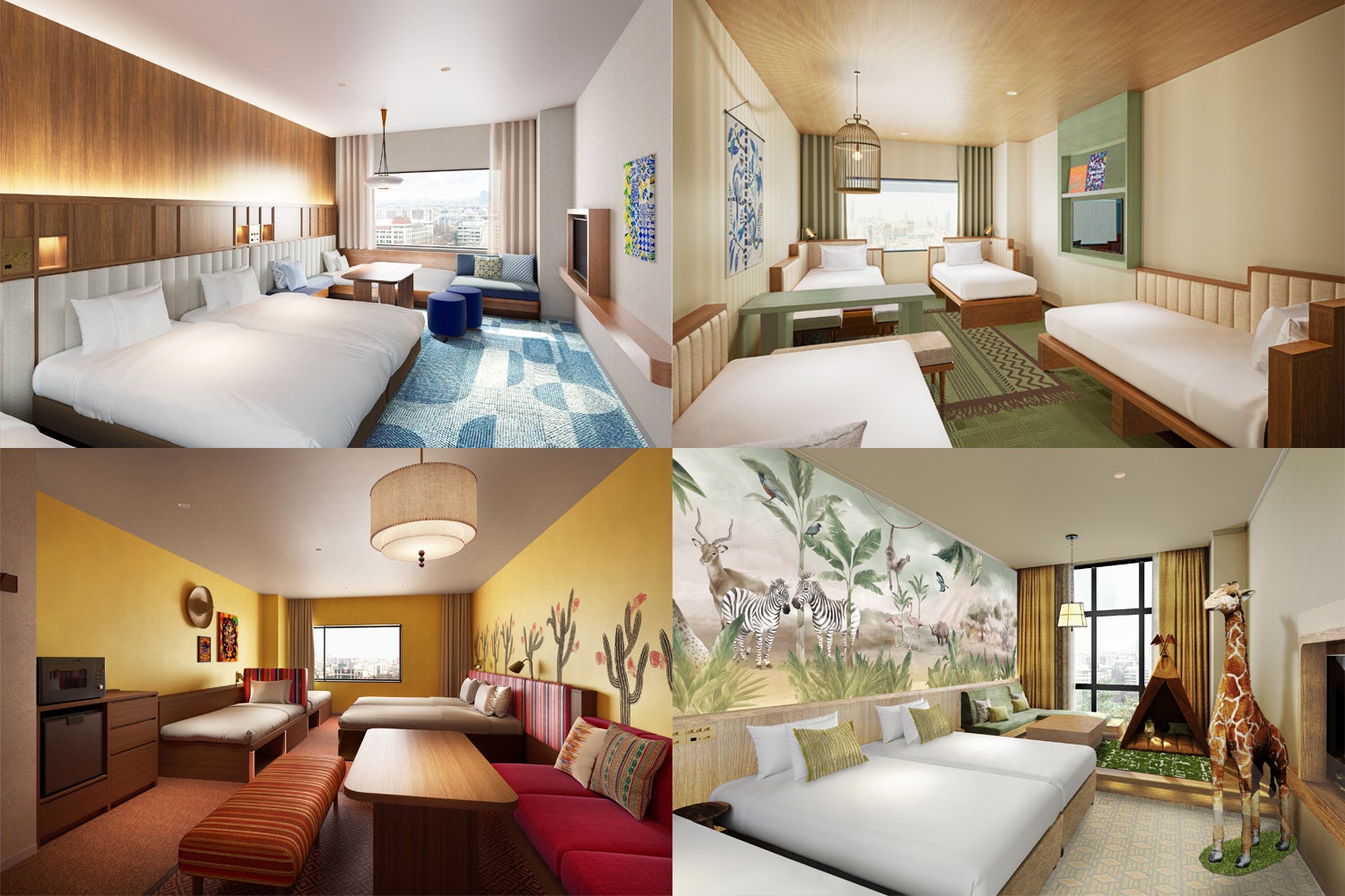 「ザロイヤルパーク舞浜」は2026年2月13日(金)、東京ディズニーリゾート徒歩圏内の立地に、750室のグループ最大規模で開業いたします。“TRAVELOGUE=旅の記憶”のコンセプトを体現した空間と、快適な旅をサポートする機能を兼ね備え、旅のプロローグとエピローグを彩る滞在を提供してまいります。客室は、ご家族連れやグループでのご利用に合わせ、4名利用を中心に最大6名様までご宿泊いただける多様なタイプを揃えており、世界の4つの海をテーマにデザインしました。