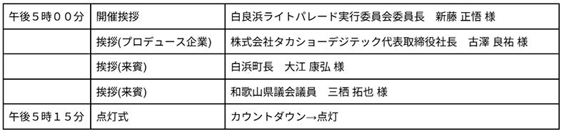 点灯セレモニーのタイムスケジュール