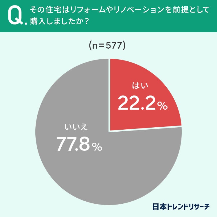 22.2%の方が、リフォームやリノベーションを前提として住宅を購入した、と回答しています。