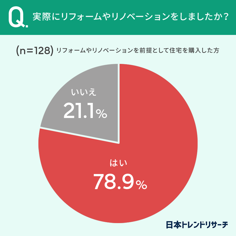 78.9%と8割近くの方が「実際にリフォームやリノベーションをした」と回答しています。
